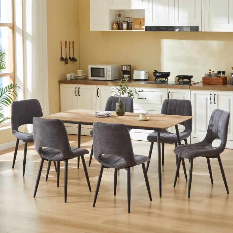 La chaise Agathe incarne l’élégance contemporaine avec son design épuré et raffiné. Habillée d’un tissu de qualité, cette chaise se distingue par sa coque rembourrée offrant un confort optimal. Le bas de son dossier ajouré apporte une touche de légèreté visuelle tandis que les trois striures verticales le long de l’assise et du dossier créent un style unique. Reposant sur des pieds en métal noir, Agathe s’adapte à tous les intérieurs grâce à sa palette de coloris variés pour son revêtement en tissu. Gage de qualité, cette chaise répond aux exigences de la norme NF EN16139 en matière de sécurité, résistance et durabilité.