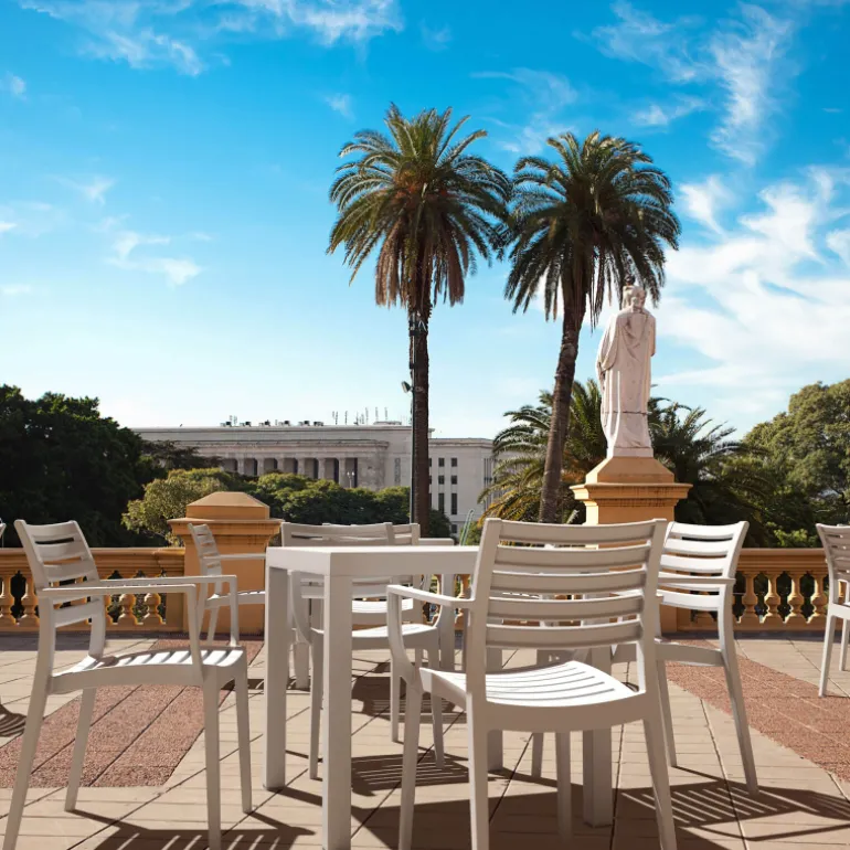 La table de jardin carrée Ares est parfaite pour celles et ceux qui possèdent un petit espace extérieur.