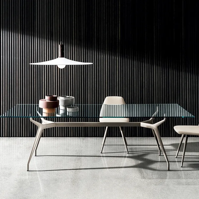 Fabriquée à partir de verre trempé de première qualité, la table Arkos garantit une durabilité exceptionnelle tout en offrant une esthétique lumineuse et raffinée. Le design de cette table crée une silhouette saisissante qui attire le regard et ajoute une dimension artistique à votre espace. Le généreux plateau en verre offre suffisamment d’espace pour accueillir vos invités mais également exposer quelques objets décoratifs. Grâce à sa construction soigneusement pensée, la table Arkos, signée par le designer italien Gianluigi Landoni, est stable et robuste, vous assurant ainsi une utilisation quotidienne sans souci. À noter que ce modèle est personnalisable puisque vous pourrez choisir ses dimensions et la couleur de sa structure et de son plateau parmi un large choix de possibilités.