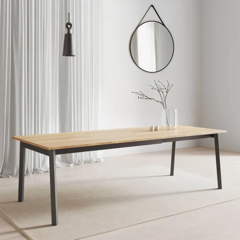 Vous cherchez à renouveler la décoration de votre salle à manger ? Avec la table Bérénice, vous avez trouvé ce qu’il vous faut ! On aime la simplicité et l’élégance de son design. Cette création belge est composée de quatre pieds carrés en acier et d’un joli plateau en mélaminé texturé. On apprécie tout particulièrement son esprit industriel à travers son plateau imitation chêne naturel et son piétement en métal noir. Ce modèle est disponible en plusieurs dimensions afin de l’adapter à la taille de votre pièce. Pour toujours plus de praticité, cette table est extensible puisqu’elle dispose d’une allonge de 90 cm dissimulée sous son plateau. Cette dernière vous permettra d’accueillir jusqu’à quatre convives supplémentaires lors de vos repas.