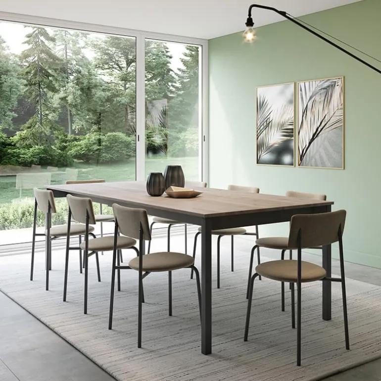 Cette table à manger mise sur sa simplicité. De forme rectangulaire et de design sobre, elle pourra intégrer facilement tout type de déco. Elle est conçue avec un plateau rectangulaire en stratifié ou mélaminé. Résistante, cette table rectangulaire est aussi très pratique. En effet, son plateau intègre une allonge portefeuille de 90 cm afin d’y convier des invités supplémentaires. Enfin, vous aurez également la possibilité de personnaliser cette table. À vous de sélectionner les coloris que vous désirez pour son plateau et ses pieds.