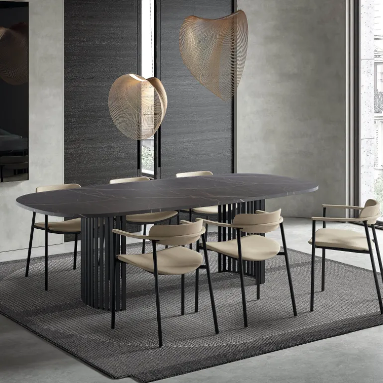 La grande table Canvas combine fonctionnalité et esthétisme grâce à ses pieds ajourés et son plateau rectangulaire aux bords arrondis. Avec ses deux pieds distinctifs, elle offre une stabilité parfaite et une touche moderne à votre intérieur.