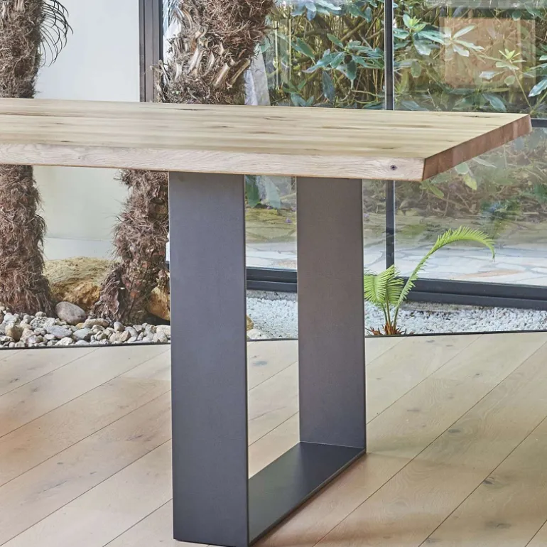 La table de séjour Carte allie simplicité et modernité. L’association du plateau aux bords biseautés en chêne massif et du piétement en métal est clairement inspirée du style industriel. Ses lignes simples et épurées lui permettent de s’intégrer dans les décorations modernes. Fabriquée en Europe, c’est une table industrielle extensible robuste autour de laquelle vous passerez de bons moments en famille ou entre amis. A noter que cette table dispose au choix d’une ou deux allonges indépendantes à installer manuellement en bout de table. L’allonge est au choix en contreplaqué (épaisseur plus fine que le plateau) ou en chêne massif (même épaisseur que le plateau).