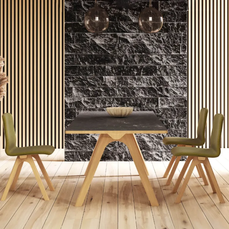 Issue de la collaboration entre une entreprise française spécialisée depuis 5 générations dans le travail du bois et le designer Guillaume Delvigne, la table design en céramique Chevron saura miser sur son esthétique et sa praticité pour trouver place dans votre séjour.