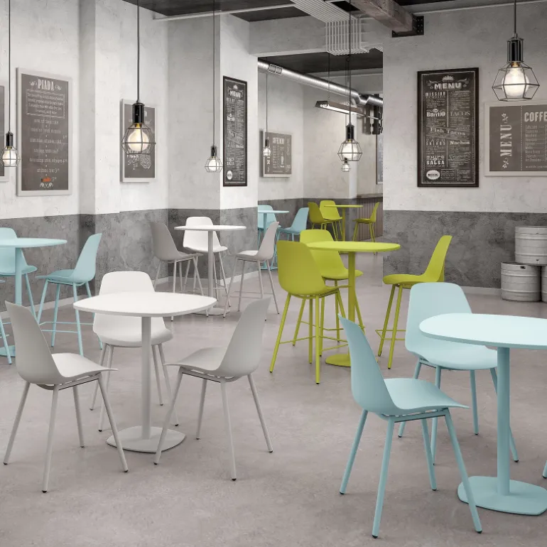 La table de cuisine Circa trouvera facilement place dans les petites cuisines grâce à son faible encombrement. On aime les rondeurs des angles de son plateau en stratifié rappelant celles de sa base de 38 x 38 cm. L’absence d’angles droits dans les coins réduira les risques de blessures en cas de chute. A noter que son pied central offre un meilleur confort aux utilisateurs lorsqu’ils sont attablés. Sa structure tout comme son plateau sont disponibles en plusieurs coloris.