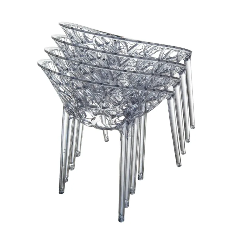 La chaise en polycarbonate Crystal est le mariage réussi entre légèreté, confort, couleur et transparence. Elle ne vous laissera pas indifférent(e).