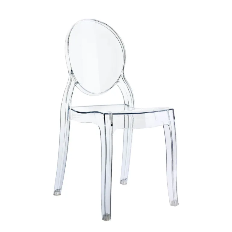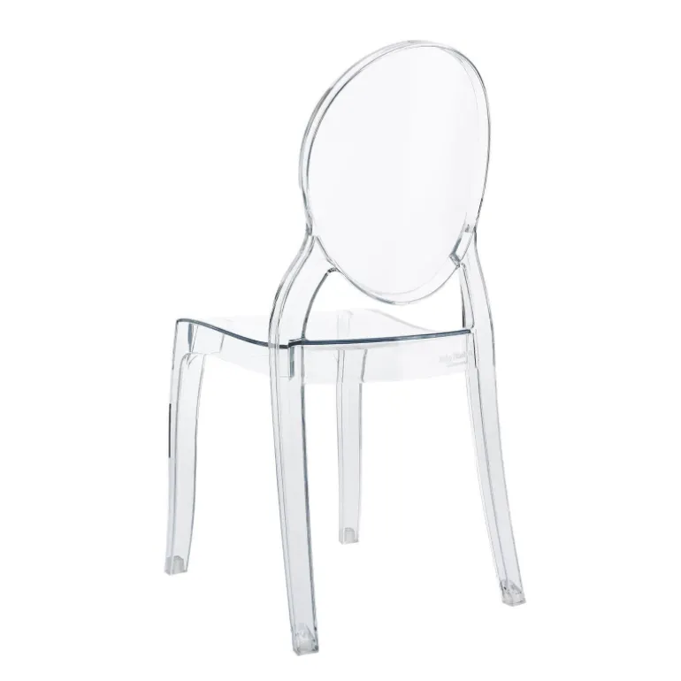 Son dossier arrondi en forme de médaillon rappelle les formes des chaises Louis XVI. Elégante et confortable, la chaise en plastique enfant s’intègre à tous les décors classiques ou modernes. Vos enfants seront fiers et heureux de s’asseoir dans du mobilier contemporain. La structure de la chaise enfant Elizabeth est en polycarbonate moulée transparente. Cette chaise transparente est également pratique car elle est empilable par 4. La chaise Elizabeth existe aussi pour les adultes.