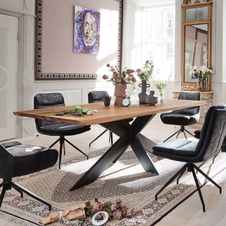 Découvrez la table Extrême, la pièce maîtresse idéale pour votre salle à manger. Avec son plateau en chêne massif rectangulaire et ses bords biseautés, elle allie élégance et modernité. Cette table design se distingue par son pied central en métal noir, qui crée un contraste saisissant et ajoute une touche contemporaine à votre espace. Personnalisable avec différentes dimensions et coloris de plateau, elle s’adapte facilement à votre intérieur tout en garantissant une qualité exceptionnelle. Avec ses légères inspirations industrielles, la table Extrême incarne style et authenticité, faisant d’elle le choix parfait pour celles et ceux qui souhaitent embellir leur salle à manger avec du mobilier dans l’air du temps.