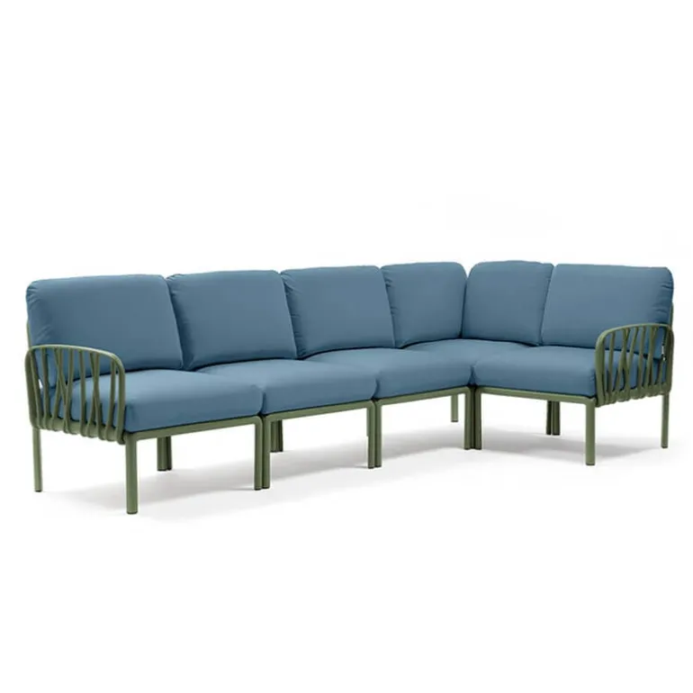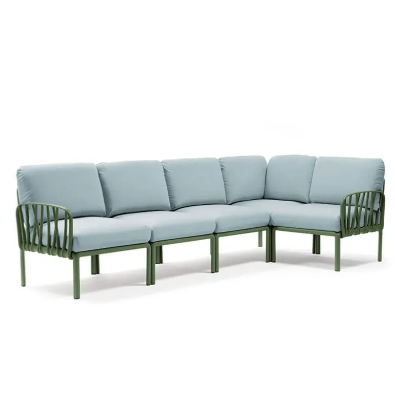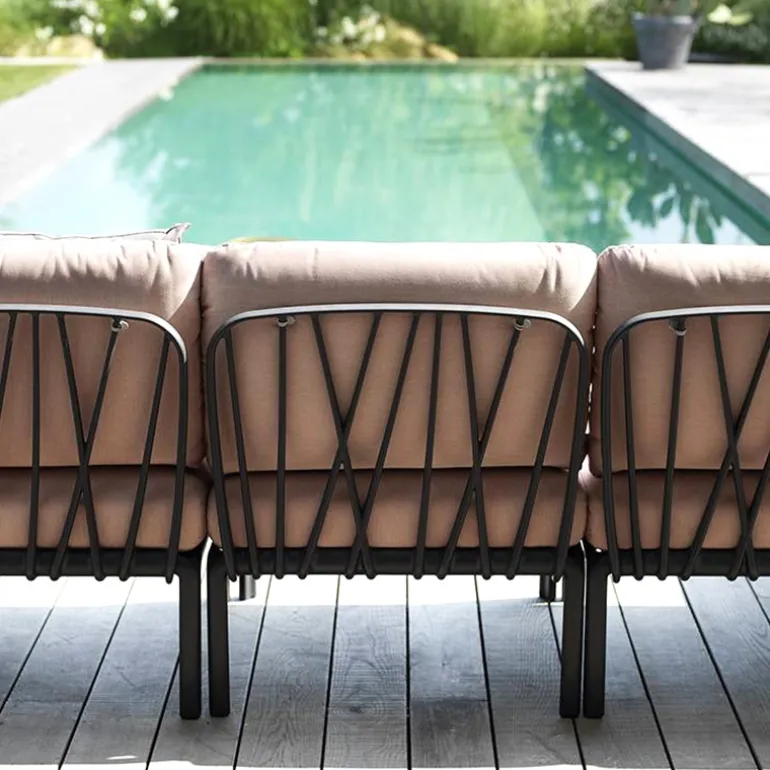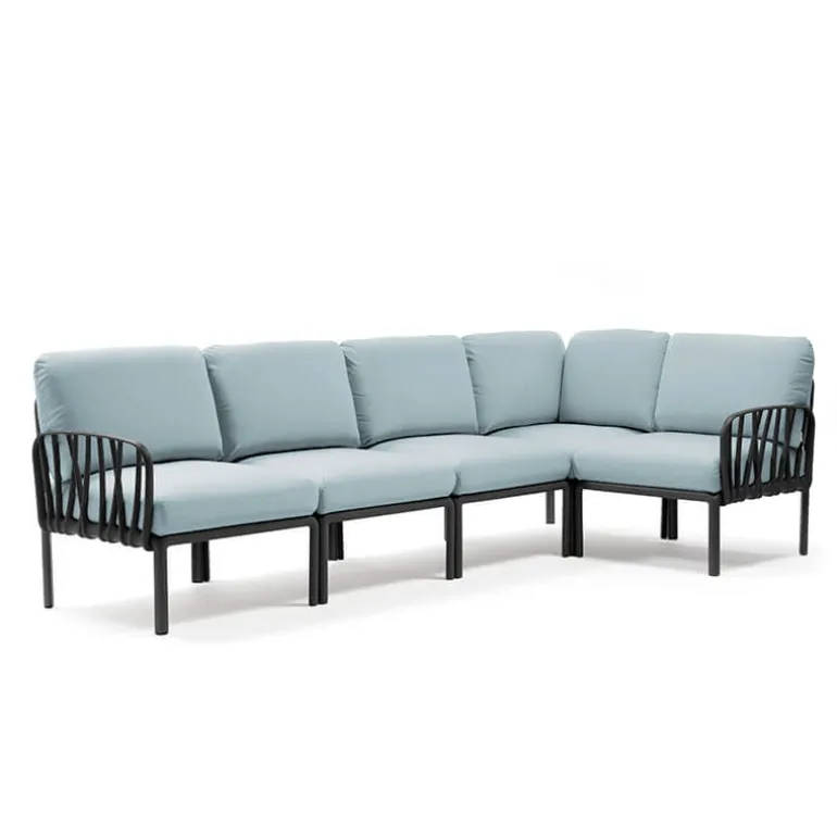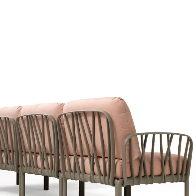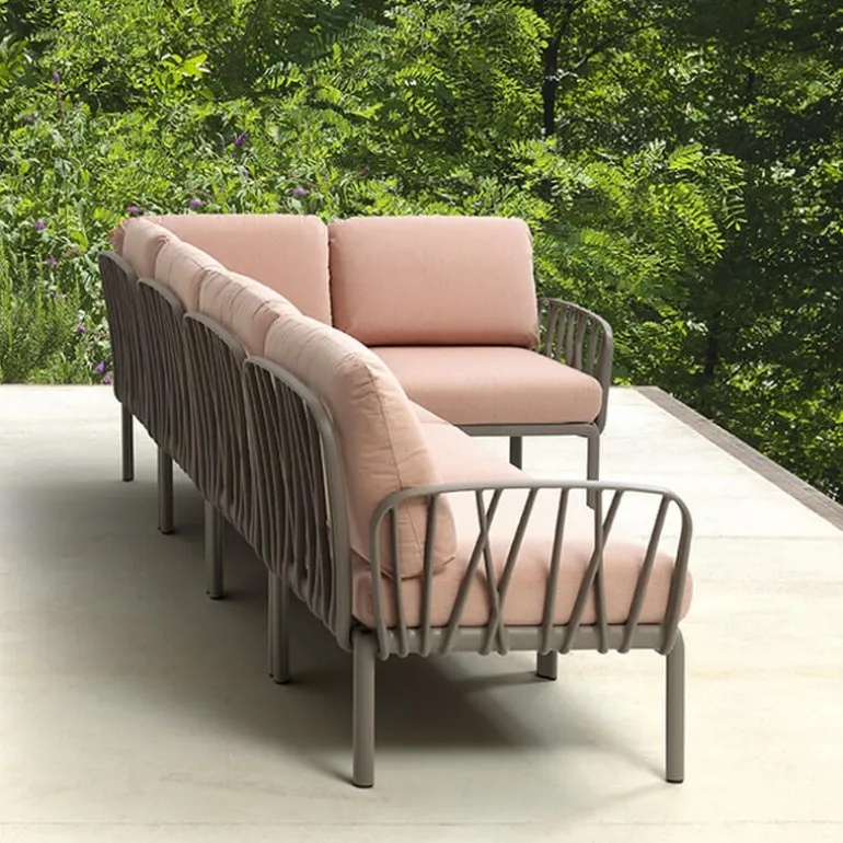 Le canapé modulaire Komodo 5 est composé d’une structure en polypropylène avec fibre de verre sur laquelle vous pourrez accrocher très facilement des coussins sur son assise et sur son dossier. On apprécie aussi le design de sa structure qui fait penser aux ramifications des branches des arbres pour un côté moderne affirmé ! Optez à votre guise pour la disposition la plus adaptée à votre pièce, à votre terrasse et à vos envies du moment puisque le Komodo peut être transformé dès que vous le souhaitez. Il peut être utilisé comme canapé d’angle modulable ou vous pourrez varier les combinaisons possibles. Proposé en plusieurs coloris, il saura également égayer votre lieu de vie tout en y apportant du confort pour des moments de détente incroyables. Pour un usage extérieur, nous vous conseillons d’opter pour le revêtement Sunbrella. Les coloris gris 163 et rose 066 sont proposés pour un usage intérieur. Côté environnemental, ce canapé a une structure en polypropylène 100% recyclable et a été analysé selon les méthodologies LCA (Life Cycle Assessment) et EPD afin de mesurer et optimiser l’impact environnemental des différentes étapes du cycle de vie du produit pour les orienter vers plus de durabilité.