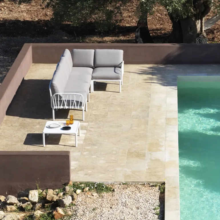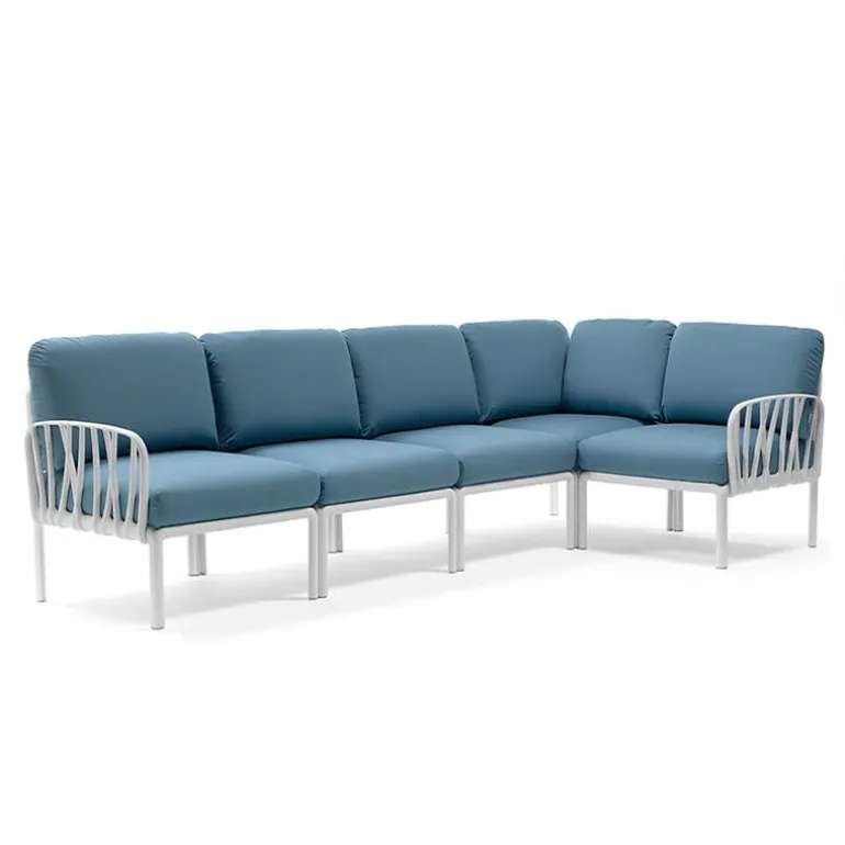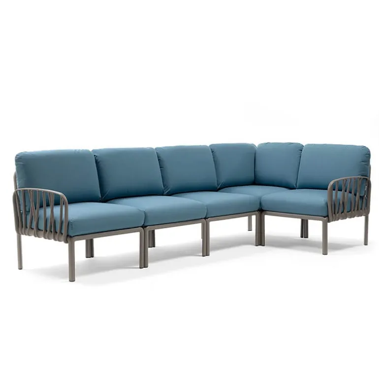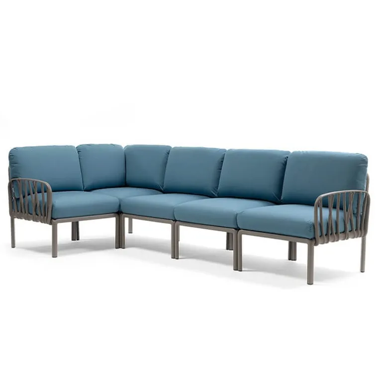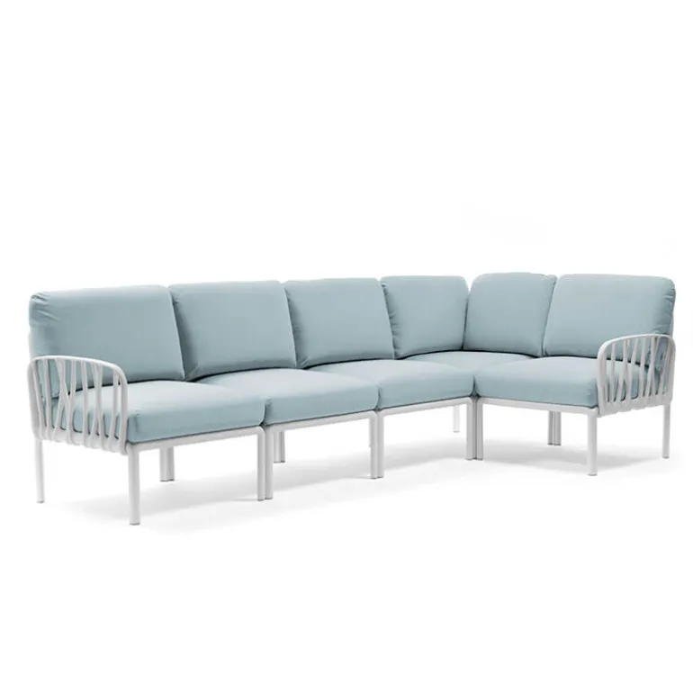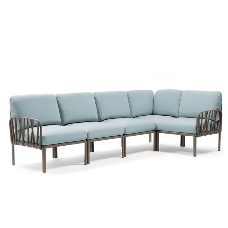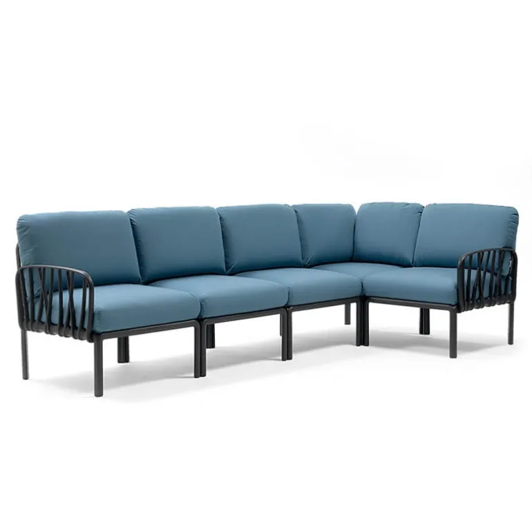 Le canapé modulaire Komodo 5 est composé d’une structure en polypropylène avec fibre de verre sur laquelle vous pourrez accrocher très facilement des coussins sur son assise et sur son dossier. On apprécie aussi le design de sa structure qui fait penser aux ramifications des branches des arbres pour un côté moderne affirmé ! Optez à votre guise pour la disposition la plus adaptée à votre pièce, à votre terrasse et à vos envies du moment puisque le Komodo peut être transformé dès que vous le souhaitez. Il peut être utilisé comme canapé d’angle modulable ou vous pourrez varier les combinaisons possibles. Proposé en plusieurs coloris, il saura également égayer votre lieu de vie tout en y apportant du confort pour des moments de détente incroyables. Pour un usage extérieur, nous vous conseillons d’opter pour le revêtement Sunbrella. Les coloris gris 163 et rose 066 sont proposés pour un usage intérieur. Côté environnemental, ce canapé a une structure en polypropylène 100% recyclable et a été analysé selon les méthodologies LCA (Life Cycle Assessment) et EPD afin de mesurer et optimiser l’impact environnemental des différentes étapes du cycle de vie du produit pour les orienter vers plus de durabilité.