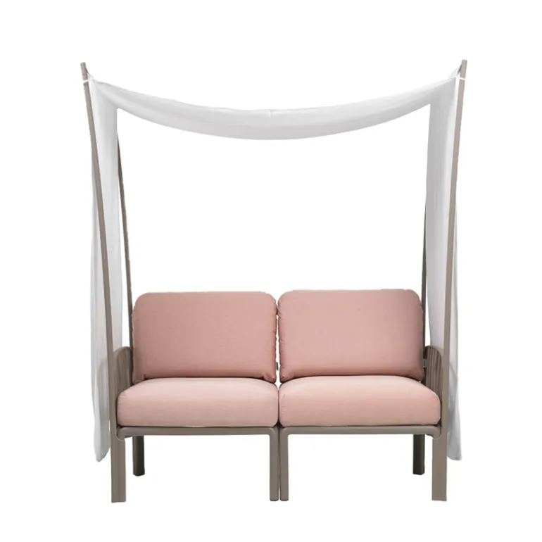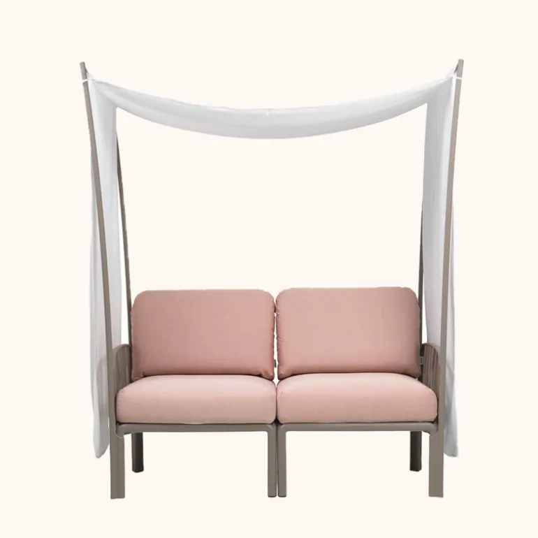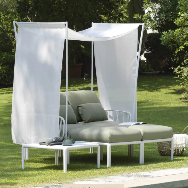Imaginé par le designer italien Raffaello Galiotto, le canapé Komodo Ombra 2 multiplie les atouts. Il s’agit d’un canapé confortable grâce à son assise et son dossier rembourrés, il dispose d’un joli style pour sublimer votre terrasse ou jardin et il comporte un voile d’ombrage pour vous protéger du soleil. Ce produit fabriqué en Italie est également d’une excellente qualité puisqu’il est composé en polypropylène renforcé avec de la fibre de verre et est coloré dans la masse. Il possède également une protection contre les UV afin de préserver son éclat dans le temps ! Son voile d’ombrage est facile à mettre en place et à défaire puisque sa structure se clipse et déclipse facilement. De quoi satisfaire vos envies de bronzage dès que vous le souhaitez ! Le voile d’ombrage est composé d’un tissu Velo qui est une innovation qui vous protègera des rayons indésirables tout en vous permettant de vous aérer grâce à ses larges mailles. Traité anti-taches, anti-moisissures et anti-UV, il résistera aux conditions extérieures. Dernier atout, ce canapé d’extérieur est personnalisable puisqu’il se décline en différents coloris pour la structure et le revêtement de l’assise.