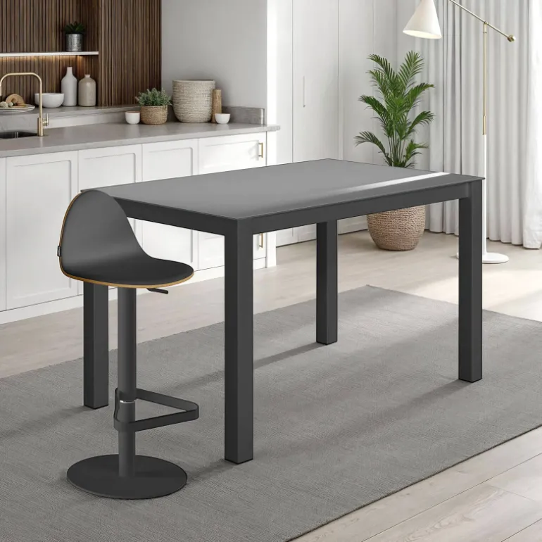 La table rectangulaire Kyoto bar d’une hauteur de 90 cm et disponible en plusieurs dimensions se mariera parfaitement avec des tabourets snack ou réglables, vous pourrez ainsi profitez de repas en famille ou entre amis. Son plateau en verre lui confère un style élégant et son piétement en métal lui apporte robustesse et simplicité, tous deux sont disponibles en différentes teintes. Vous pourrez ainsi choisir la combinaison qui correspond à vos besoin et intégrer cette table dans une salle à manger ou une cuisine.