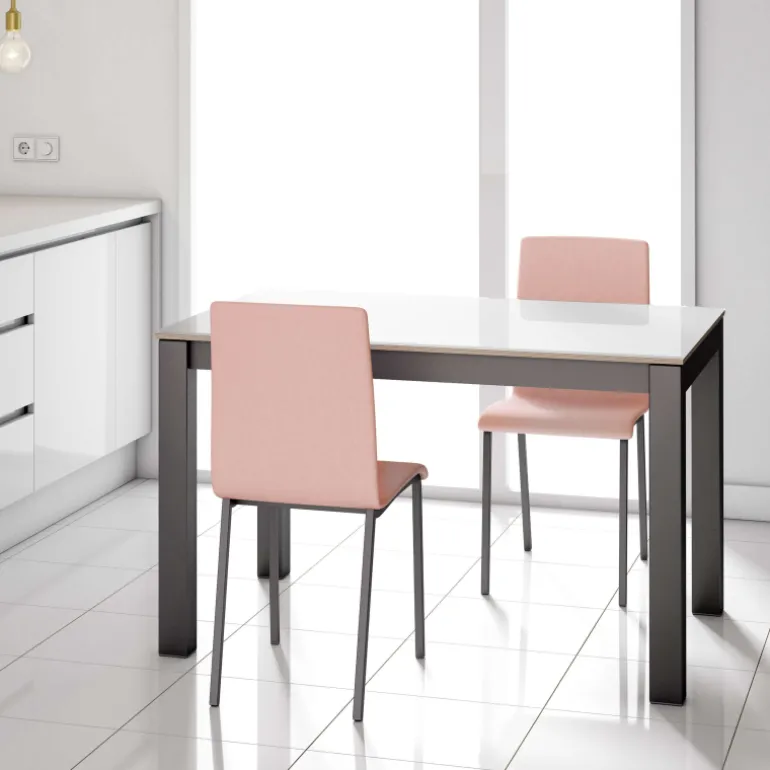 La table rectangulaire Kyoto a un look intemporel qui la rend très facilement accommodable dans tout type d’intérieur. Sa structure large en métal associée à son plateau fin en verre définissent son style contemporain. Selon la dimension que vous choisirez, vous pourrez passer d’une table de 4 à 12 personnes grâce à ses allonges en portefeuille qui sont directement intégrées dans la table. Choisissez la couleur du plateau et de son piétement métallique pour l’accommoder au mieux à votre séjour. Sa fabrication espagnole vous assure un produit de très bonne qualité !