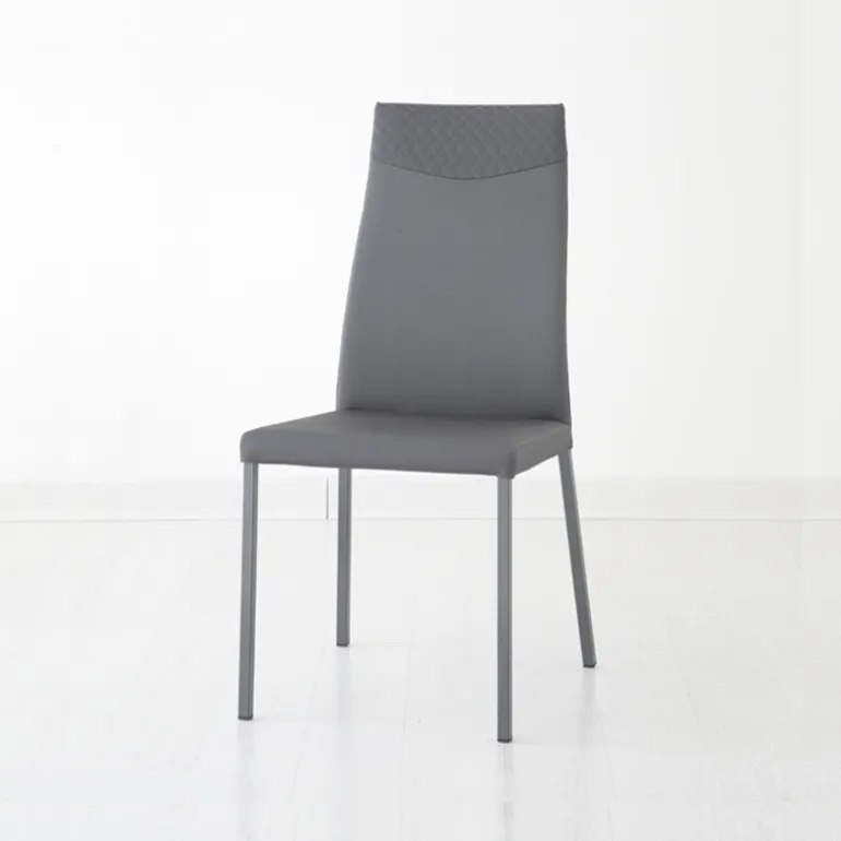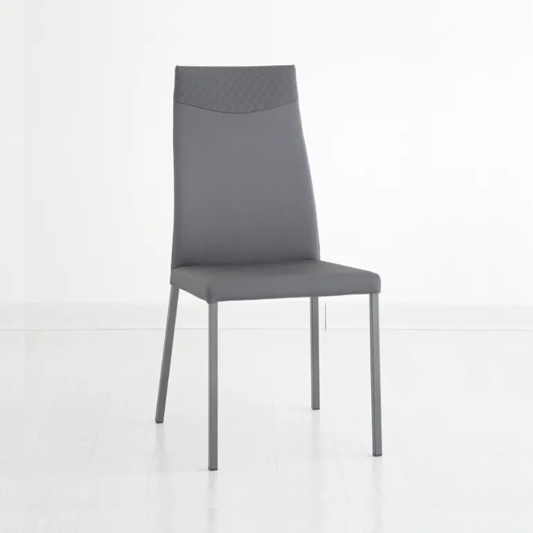 La chaise de salle à manger Lena M est une création italienne au design élégant et indémodable qui sublimera votre salle à manger et lui apportera beaucoup d’allure. Elle est composée d’un revêtement en synthétique légèrement matelassé sur le haut intérieur du dossier et entièrement matelassé dans le dos du dossier. Elle possède une silhouette élancée et un style très contemporain. Joliment décorée d’un délicat matelassage sur le haut de son dossier, la chaise italienne Lena M est pleine de charme ! Le synthétique est un matériau facile d’entretien qui convient aussi bien à la salle à manger qu’à la cuisine. De plus, avec son assise et son dossier rembourrés, la chaise Lena sera très confortable pendant toute la durée de vos repas. Sachez aussi que ce modèle est personnalisable, vous serez en effet en mesure de choisir la couleur du revêtement de votre chaise. Il vous appartient également de choisir des pieds en métal apparents ou bien des pieds en métal gainés en synthétique. À vous de jouer pour adapter votre chaise à votre décoration intérieure ! A noter que les coutures sont contrastées afin de sublimer le matelassage du produit : M02 = matelassé TAUPE coutures coloris marron M01 = matelassé MARRON coutures coloris marron clair M11 = matelassé METEORE coutures coloris grège M18 = matelassé CARBONE coutures coloris gris M14 = matelassé ORANGE coutures coloris marron