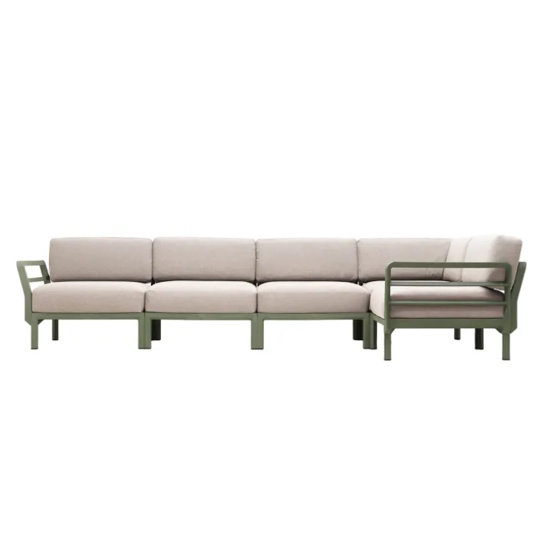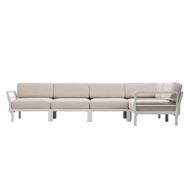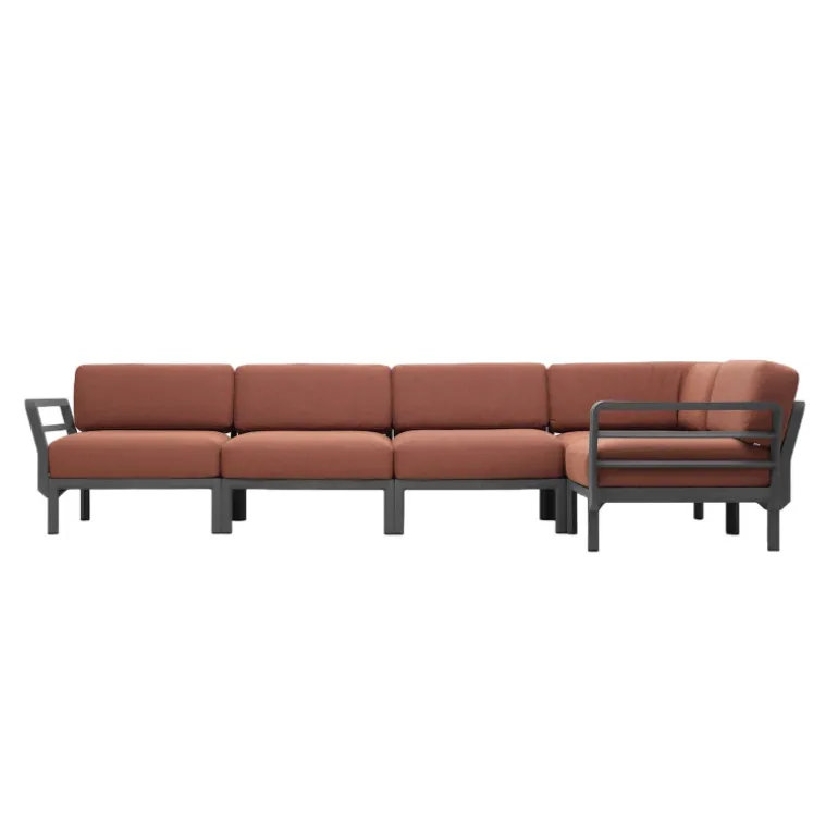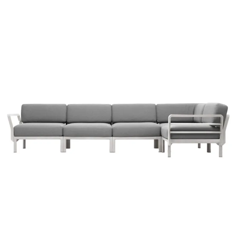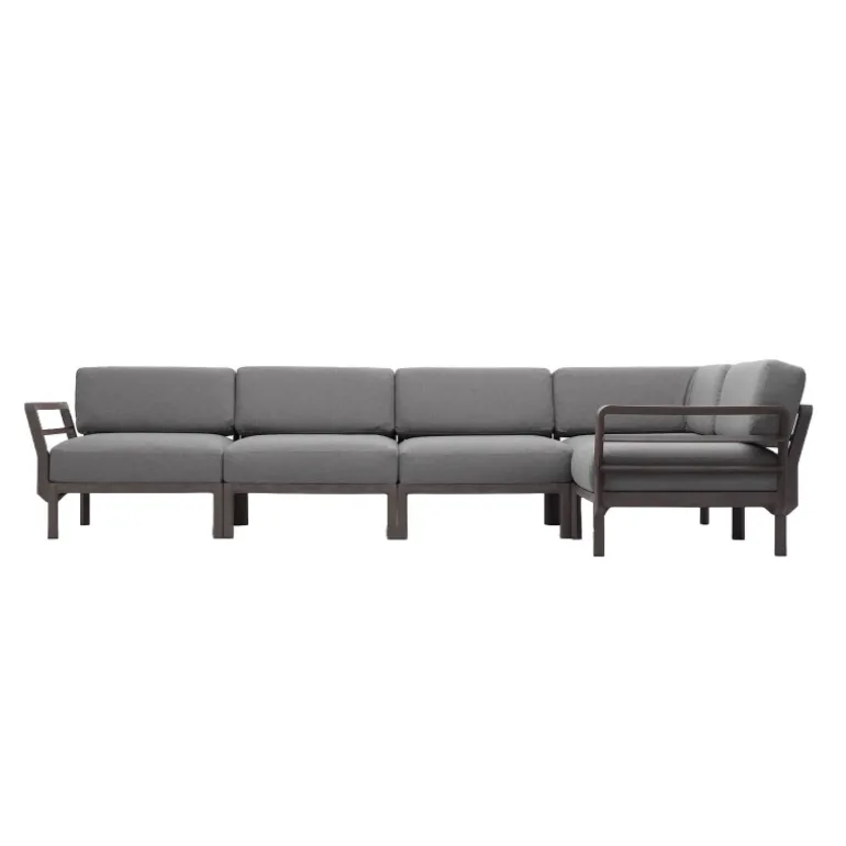 Composé de 5 assises, ce canapé d’extérieur s’adapte à toutes les envies grâce à sa structure en résine régénérée, mêlant polypropylène renforcé de fibre de verre et un revêtement en tissu composé en partie d’une fibre recyclée. Conçu pour une flexibilité maximale, il permet de créer d’innombrables configurations grâce à ses différents modules. Ses dossiers et accoudoirs s’enclenchent sans vis, offrant une installation intuitive et un rendu harmonieux. Sa structure en polypropylène teintée dans la masse et traitée anti-UV garantit une excellente résistance aux conditions extérieures, tout en conservant son esthétique au fil du temps. Côté confort, ses coussins déhoussables avec fermeture zippée facilitent l’entretien au quotidien. Ces derniers sont imperméables afin d’offrir une bonne résistance à l’eau et aux taches. Ils ont également une bonne résistance aux UV. Disponible en plusieurs coloris, le canapé de jardin Maximo 5 séduit par son aspect texturé et ses nuances naturelles, conférant à chaque modèle une allure unique et authentique. Enfin, sa certification CATAS atteste de sa qualité, sa robustesse et sa durabilité, faisant de Maximo 5 un choix sûr et durable pour tous les extérieurs.