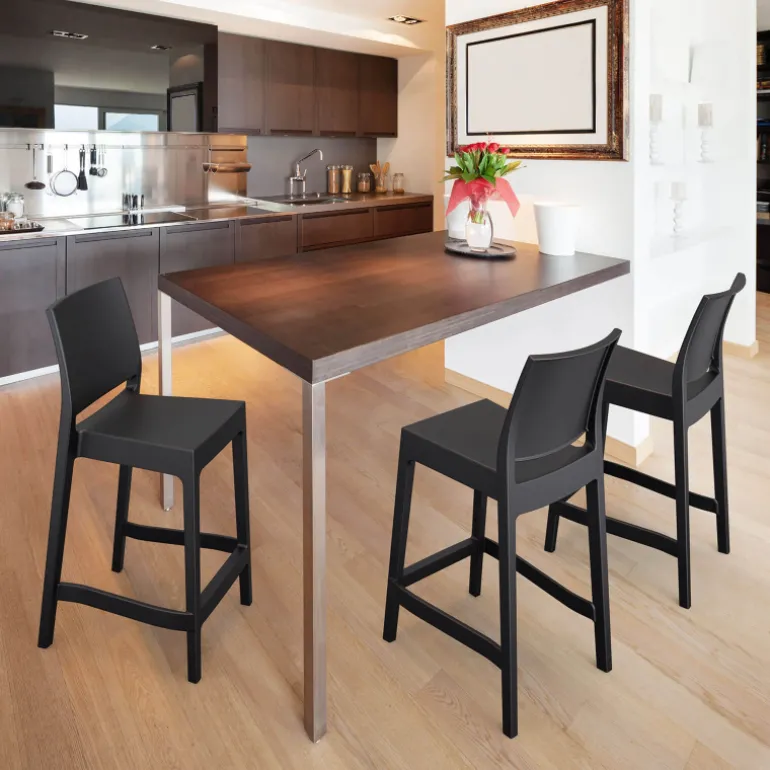 Ce tabouret snack empilable a été conçu grâce aux dernières technologies de moulage. Il se compose d’une seule injection de polypropylène renforcé avec de la fibre de verre. L’association des deux matières assure une bonne résistance au produit. Sa taille lui permet d’être associé à des tables snack de 90 cm de haut. Le tabouret Maya est disponible en plusieurs teintes neutres afin d’intégrer aisément tous les intérieurs sans fausse note ! A noter qu’il est empilable par 4, qu’il est très simple d’entretien et que vous pourrez également utiliser cette chaise haute en extérieur. Par conséquent, si vous recherchez un produit pratique et esthétique, foncez ! À noter que certaines singularités peuvent apparaître sur le produit : de légères traces de moulures ainsi que quelques variations de couleurs.