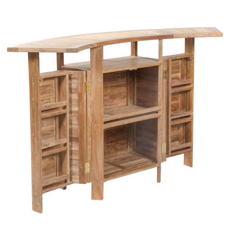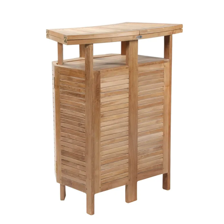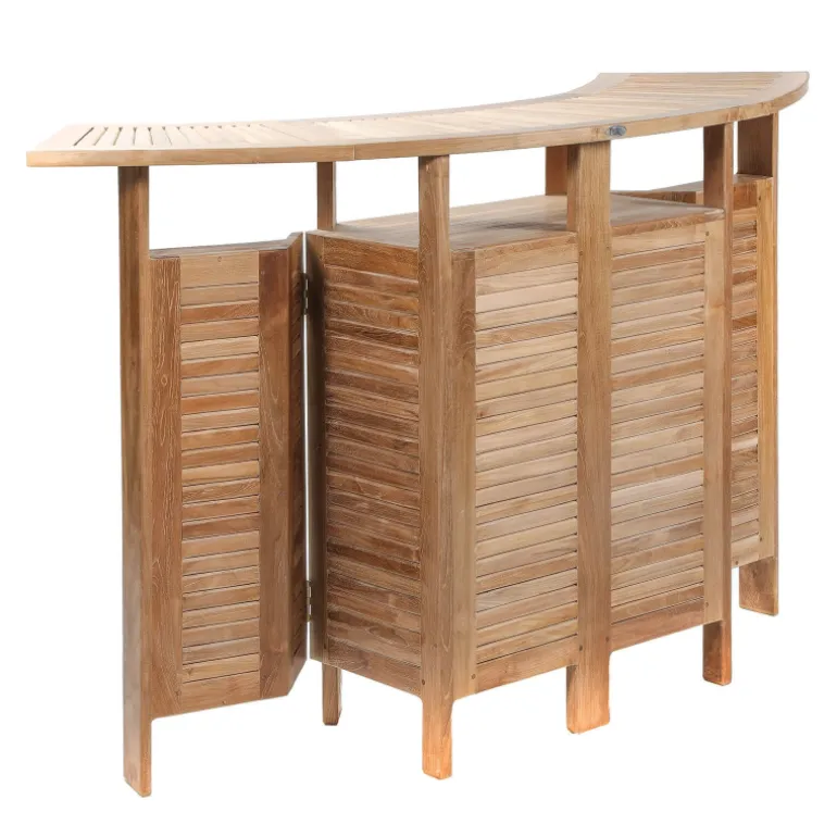 Le bar de jardin Menhir est le compagnon idéal pour des moments conviviaux en extérieur. Conçu en teck Grade A premium, un bois noble reconnu pour sa résistance aux intempéries et aux insectes xylophages, ce bar pliable allie élégance et praticité. Son design astucieux permet de le déployer rapidement pour créer un véritable espace de réception et de le replier après usage pour un gain de place optimal. Pensé pour les amateurs d’apéritifs en plein air, Menhir intègre des rangements dédiés aux bouteilles et aux verres, offrant ainsi une organisation efficace et un accès facile à vos boissons. Son allure chaleureuse et sa robustesse en font un élément incontournable pour aménager un coin bar fonctionnel et raffiné dans votre jardin, sur une terrasse ou au bord d’une piscine.
