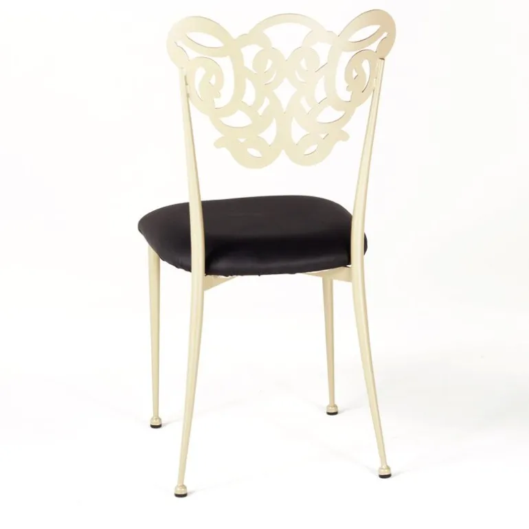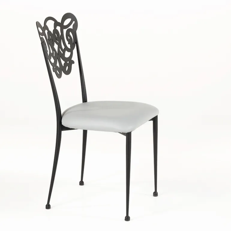 Cette chaise contemporaine séduit par son esthétique originale et romantique. Son dossier tout en arabesque vous évoquera sûrement les belles terrasses méditerranéennes. Pour compléter sa structure en métal, une assise en synthétique garnie vient lui apporter un brin de douceur. Cette jolie chaise trouvera sa place dans une salle à manger ou bien dans un salon. Pour un intérieur harmonieux, nous vous proposons de la personnaliser. Choisissez les coloris et finitions que vous souhaitez en fonction des teintes déjà présentes dans votre pièce de vie.