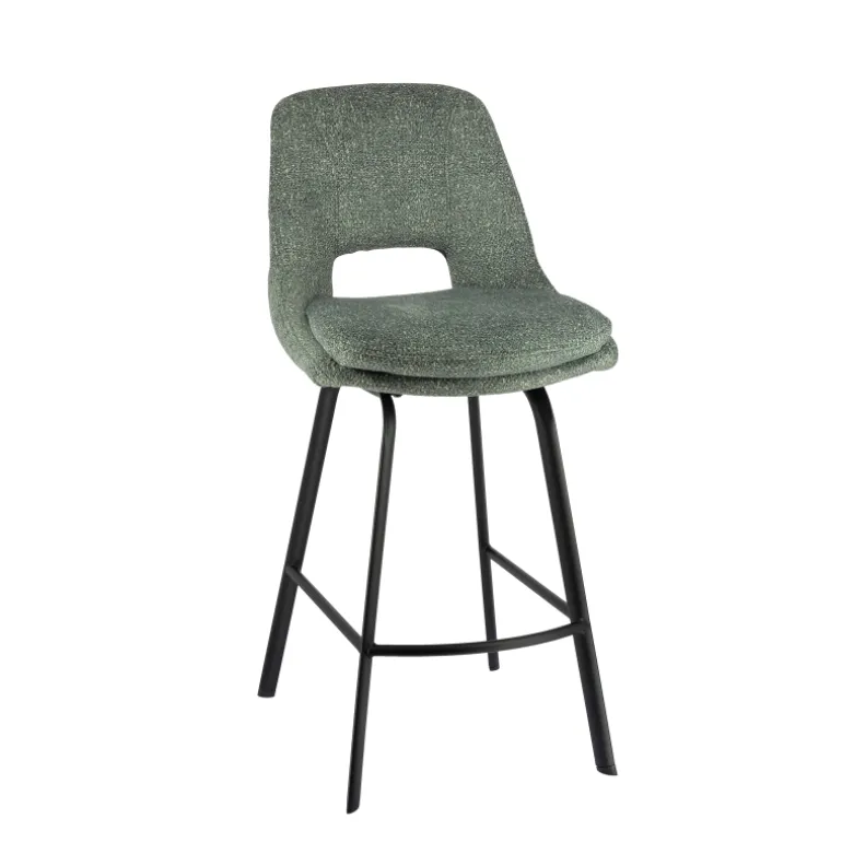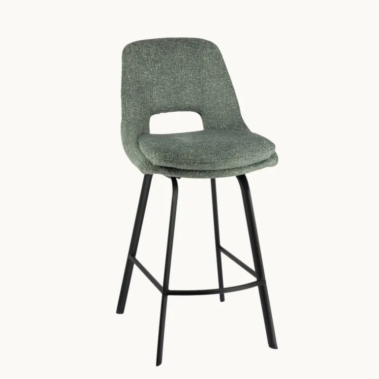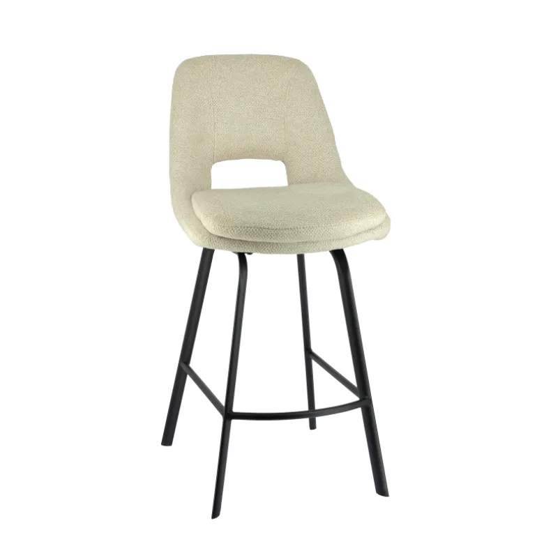Olivier, est un tabouret de hauteur snack qui incarne l’élégance contemporaine. Sa silhouette épurée et son caractère unique se distinguent par un ajour à la base de son dossier, qui apporte une touche de légèreté. Habillé d’un tissu disponible en plusieurs coloris et d’élégants pieds en métal noir, Olivier s’intègre avec finesse dans tous les univers décoratifs. Son assise et son dossier généreusement rembourrés garantissent un confort remarquable, vous invitant à la détente lors de vos pauses gourmandes ou vos instants de partage. Sa hauteur snack lui permet d’être associé à des tables ou des îlots d’environ 90 cm de haut. Certifié par la norme NF EN12520, il est également gage de sécurité, résistance et durabilité !