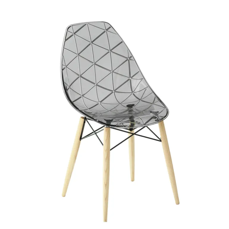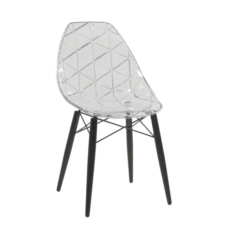 Ce produit résolument design brillera par sa modernité et son confort dans toutes les pièces de votre intérieur. En effet, la chaise design Prisma est composée d’une coque en acrylique transparente avec un motif triangulaire gravé en relief et dupliqué sur l’ensemble de son dos. Ces motifs soulignent l’originalité et le caractère du produit, pour le plus grand plaisir des adeptes de mobilier tendance. La coque repose sur des pieds en frêne reliés par une entretoise métallique noire. Son esthétique soignée, le choix des matériaux utilisés et l’équilibre parfait entre acrylique transparent et bois massif sont les clés du succès de la Prisma, tout comme son excellent confort d’assise.