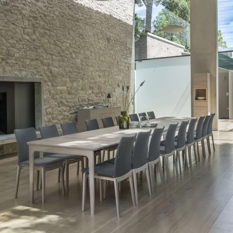 La numéro 26-27 se fera une joie de sublimer un intérieur de style scandinave. Son plateau rectangulaire possède des angles arrondis qui l’affinent et l’adoucissent. Elle insufflera dans votre séjour un vent de convivialité venu tout droit des pays du nord ! Fabriquée en bois massif, cette table est d’une qualité qui résistera à toutes les épreuves ! La liste de ses atouts ne s’arrête pas là : la table SM 26-27 est extensible. Sous son plateau se cachent trois allonges qui la rendront capable d’accueillir jusqu’à 14 personnes. Pour finir, plusieurs dimensions sont proposées ainsi que diverses essences de bois afin de convenir à tous les intérieurs !