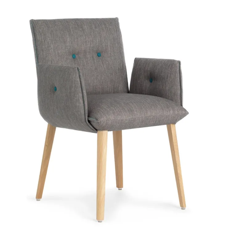 Le fauteuil cocooning Soda ne laisse personne indifférent ! On aime sa douceur ainsi que son confort souligné par la mousse utilisée et ses ressorts Nosag dissimulés dans l’assise qui lui offrent une bonne élasticité et un excellent soutien. Le mélange du bois et du tissu lui permet d’intégrer avec douceur votre décoration intérieure. Son style atypique renforcé par les deux boutons décoratifs présents sur le dossier mais également les surîqûres latérales plaira à tous vos invités. Placé dans un séjour, une chambre ou un bureau, ce fauteuil deviendra un élément central de votre pièce ! Ce produit fabriqué en Europe par la marque belge Mobitec est une invitation à la détente.