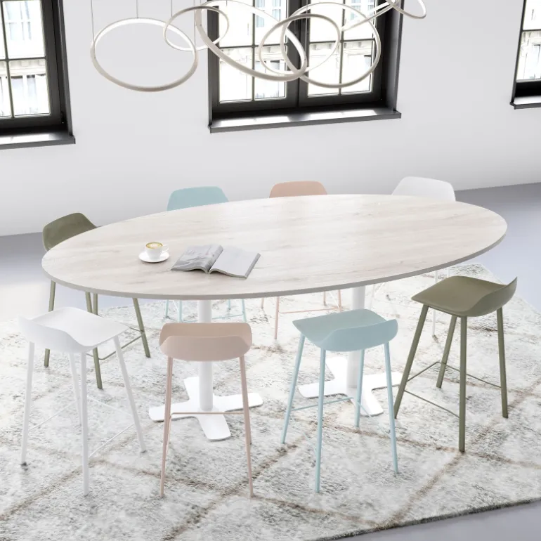 Le plateau ovale de la table snack Spinner procurera un charme certain à votre pièce. Conçu en stratifié et associé à deux pieds en métal avec une base en croix à chaque bout de table, cette table moderne saura faire la différence dans votre pièce ! Que ce soit son plateau ou ses pieds, vous aurez l’opportunité de choisir les coloris des deux éléments. À vous de jouer pour créer la combinaison adaptée à votre pièce ! Ce produit peut être associé à des tabouret snack d’une hauteur d’assise de plus ou moins 65 cm.