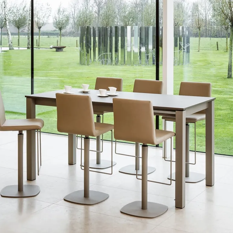 La table haute à rallonge Valencia dispose d’une hauteur de 90 cm et peut être accompagnée de tabourets snack de 65 cm de haut. Cette table extensible saura s’adapter selon les situations. En effet, son allonge en portefeuille de 60 cm située en bout de table est très facile à mettre en place. Il vous suffit de pousser le plateau et de sortir l’allonge rangée sous la table. Existant en de nombreux coloris, le plateau en stratifié ou mélaminé s’adapte à toutes les décorations d’intérieur. La structure de la table Valencia est en métal et est également disponible en une multitude de finitions. Les pieds sont carrés et d’une section de 70 x 70 mm.