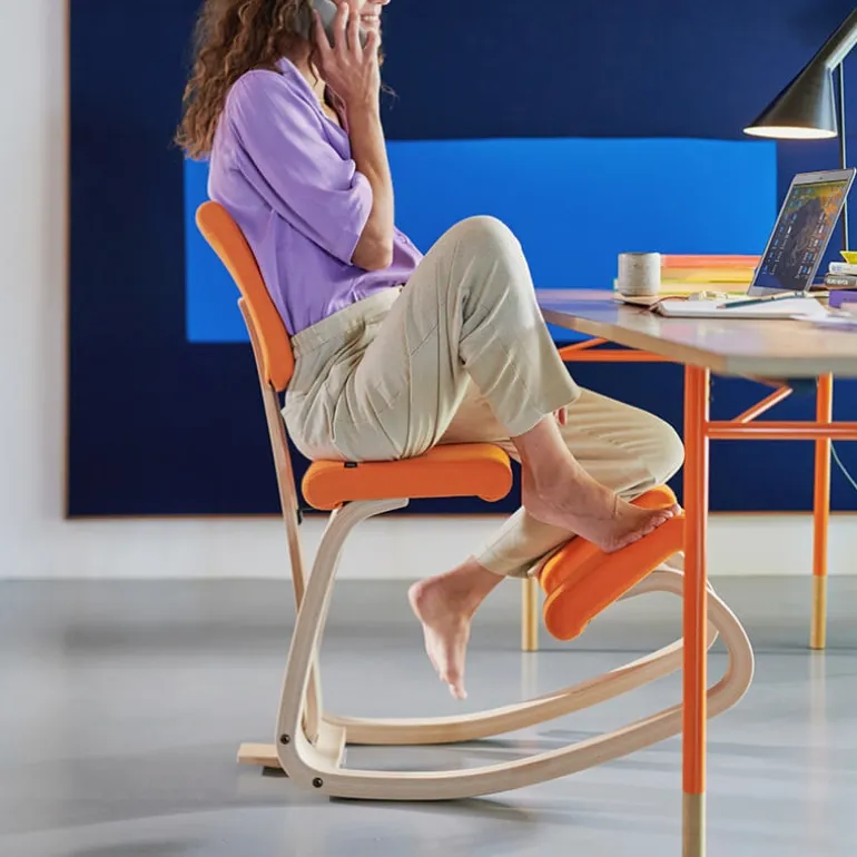 Conçue par le designer Peter Opsvik la chaise de bureau Variable a été pensée pour offrir un confort optimum. Son design original permet à l’utilisateur de varier ses positions. Constitué d’une assise et d’un dossier en tissu, ce siège à bascule vous évitera les maux de dos ou bien d’épaules. Son design unique permet également de renforcer les muscles abdominaux, d’empêcher l’apparition de tensions dans le dos et de favoriser la circulation sanguine. Avec tous ces avantages, il y a de grandes chances pour que vous ne puissiez plus vous en passer. Enfin, ce siège à bascule est également personnalisable. Adaptez-le aux couleurs de votre bureau en choisissant les coloris du tissu et du bois.