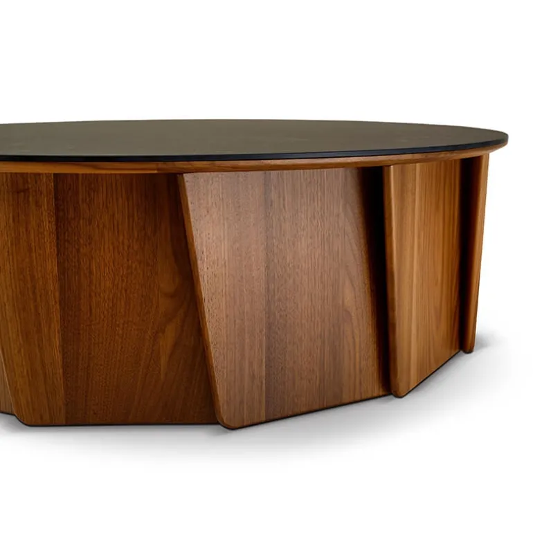 Et si vous apportiez un brin d’originalité à votre décoration de salon ? La table basse ronde Volute est le modèle parfait pour amener une touche moderne et tendance à votre pièce de vie. Sa forme ronde insufflera une atmosphère chaleureuse et conviviale dans votre séjour pour partager de bons moments autour d’apéritifs en famille ou entre amis. Son originalité réside dans son piètement assurément design, composé de lames de bois massif. Grâce à son plateau en céramique vous pourrez profiter de moments de convivialité sans craindre d’abîmer votre table basse puisque cette matière est très solide mais aussi facile à vivre. À vous de créer la table basse qui s’adaptera parfaitement dans votre salon en sélectionnant la teinte du bois, de la céramique mais aussi les dimensions du plateau !