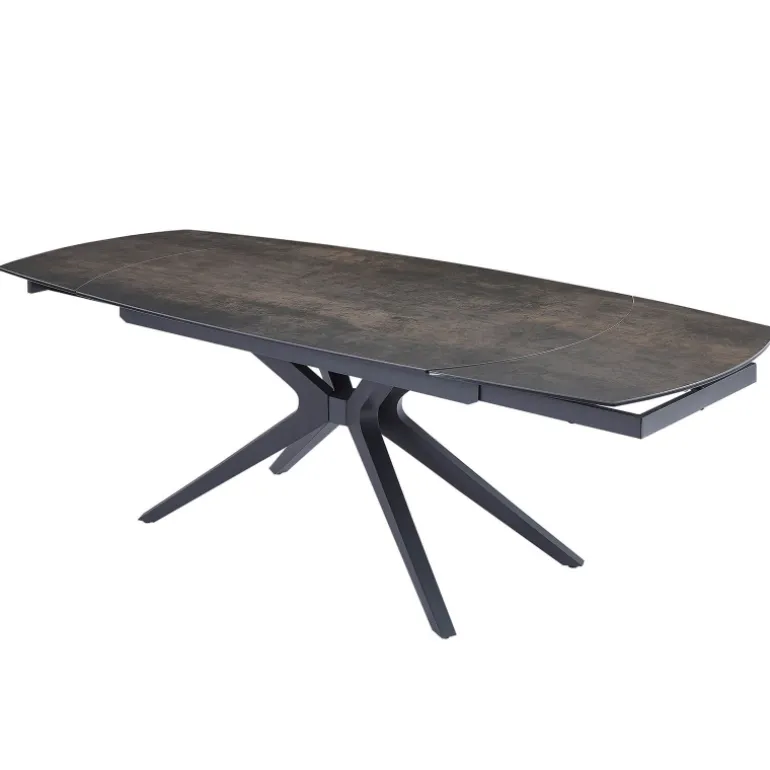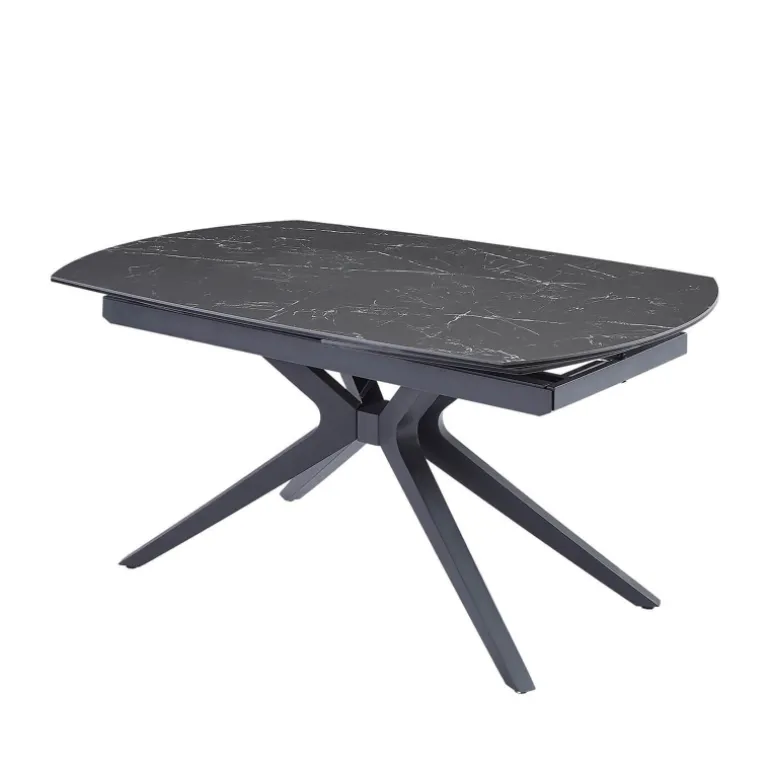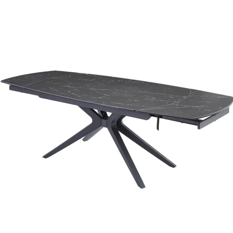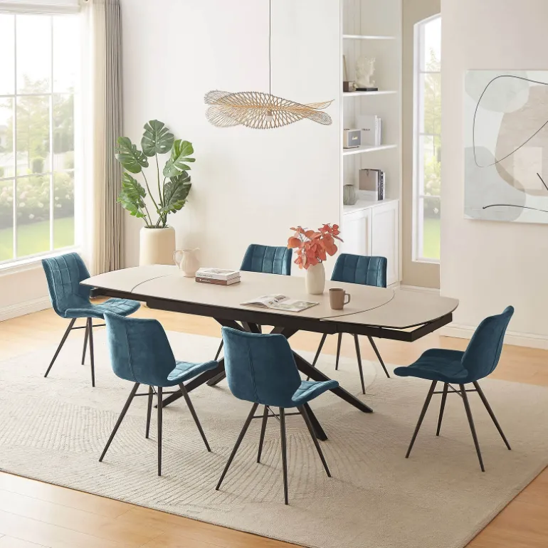 La table à manger extensible Angèle sera une alliée parfaite pour les moments de convivialité. Dotée d’un plateau en céramique raffiné, elle allie esthétisme et robustesse. Eh oui, la céramique est une matière reconnue pour sa résistance aux rayures, à la chaleur et pour sa facilité d’entretien. Ses pieds en métal noir au design moderne apportent, quant à eux, stabilité et style, afin de s’intégrer harmonieusement dans différentes décorations. Grâce à ses 2 allonges intégrées de 40 cm chacune, cette table s’ajuste facilement pour accueillir plus de convives en un clin d’œil. Pour cela, il suffit de réaliser une rotation du plateau principal pour que les extrémités de la table se déploient automatiquement. Disponible en plusieurs coloris, la table Angèle saura s’adapter à vos goûts et à votre décoration d’intérieur.