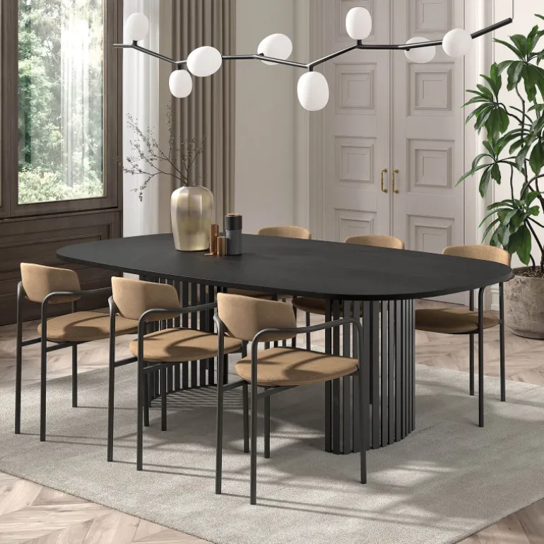 La grande table Canvas combine fonctionnalité et esthétisme grâce à ses pieds ajourés et son plateau rectangulaire aux bords arrondis. Avec ses deux pieds distinctifs, elle offre une stabilité parfaite et une touche moderne à votre intérieur.