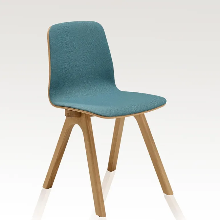 La chaise design Chevron s’inspire des éléments de charpenterie à l’image de ses pieds qui rappellent l’esthétique des poutres. Lorsque l’on se penche sur son design, on adore également son minimalisme où tous les éléments superflus ont été enlevés pour mettre en avant son caractère. La chaise Chevron est composée d’une structure en bois massif et d’une coque en multiplis de bois cintré plaqué chêne de fil pour lui apporter de la souplesse et un confort optimal. L’assise et le dossier sont également habillés d’un revêtement en tissu pour lui insuffler de la douceur. Enfin, cette chaise est personnalisable puisque vous pourrez choisir le coloris du bois et du tissu pour l’adapter à votre décoration d’intérieur.
