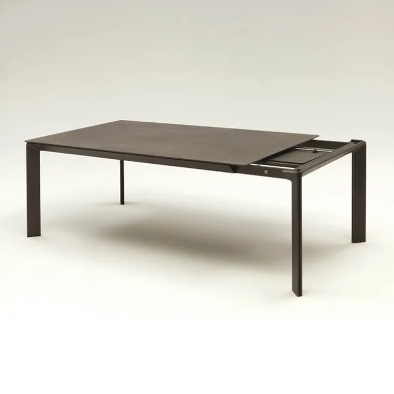 Simple et efficace, ce sont les mots d’ordre de la table italienne Class. Cette table de salle à manger est composée de quatre pieds en aluminium verni. Ceux-ci sont merveilleusement assemblés pour former une structure élégante et moderne. Sur celle-ci, un plateau en verre et céramique est posé. Pour les tables avec le plateau en céramique marbré, nous ne pouvons garantir la continuité du grain entre les différentes parties qui composent le plateau. L’un des plus gros atouts de la table Class ? Son plateau extensible avec ouverture en portefeuille. Ainsi, elle s’allonge pour vous permettre de convier plus d’invités lors de vos repas. La table Class est également personnalisable, pour votre plus grand plaisir. Vous pourrez donc choisir parmi un éventail d’options les dimensions qui vous conviennent, ainsi que les coloris du plateau et de la structure que vous préférez.