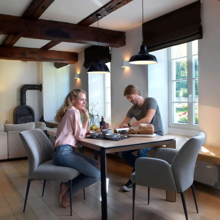 La chaise avec accoudoirs cocooning Enora apportera à la fois du caractère et de la douceur dans votre intérieur.