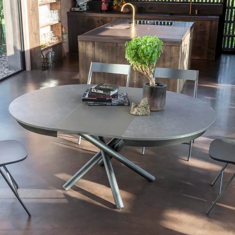 On aime le style ultra moderne de la table Fahrenheit, dotée d’un superbe piétement central mikado et d’un beau plateau en céramique. Grâce à ses 3 allonges en mélaminé, cette table peut recevoir jusqu’à 12 convives. On ne pourrait faire plus convivial ! Sous son design made in Italie, Fahrenheit Super abrite un mécanisme d’extension téléscopique simple d’utilisation. Au niveau des bords du plateau, se situent 4 pieds rabattables afin d’offrir un soutien complémentaire pour une stabilité optimale. Explorez nos infinies possibilités ! Fahrenheit Super se décline en divers coloris afin de sublimer votre décoration intérieure.