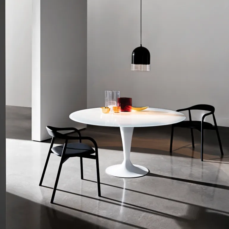 Jolie et ronde à souhait, la table design Flûte invite à s’y attabler. Ses lignes fines et aériennes lui donnent une incroyable sensation de légèreté. Tandis que son piétement en tulipe, chromé ou laqué, lui offre une stabilité à toute épreuve. Son plateau en verre trempé de 12 mm d’épaisseur (10 mm pour le diamètre 100 cm) est déclinable en verre extralight laqué ou dépoli. Cette table peut convenir à tous types de famille puisqu’elle existe en plusieurs dimensions. Atout non négligeable, son plateau rond offre un confort optimal à vos invités. Déclinable en plusieurs coloris, la table ronde Flûte est une pièce que l’on ne lasse pas d’avoir à la maison.