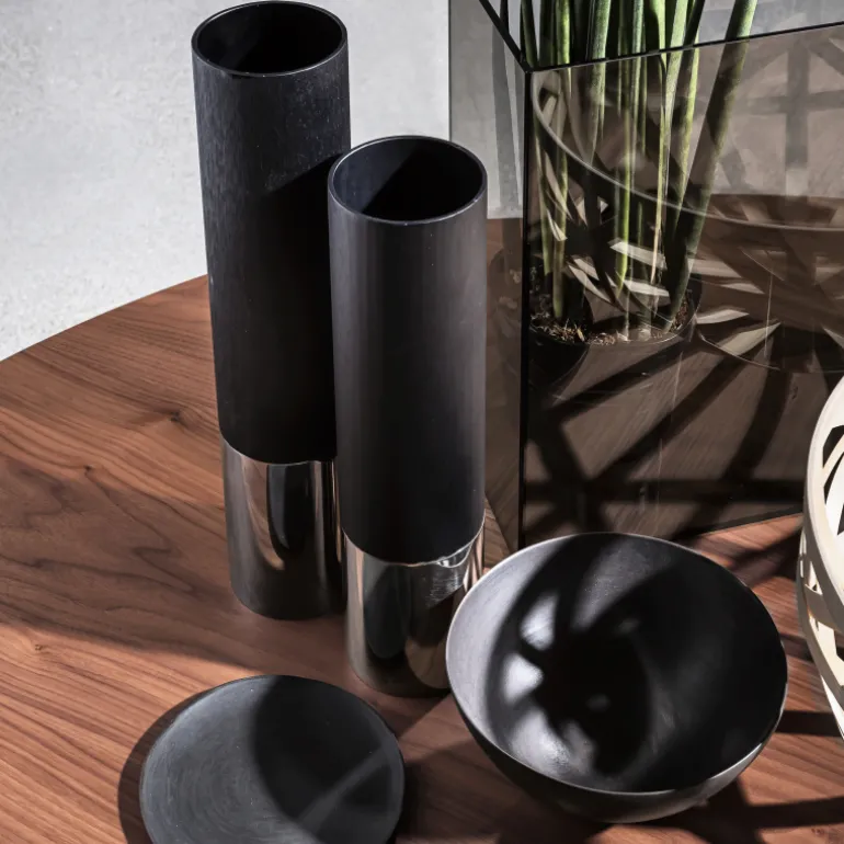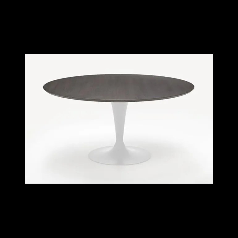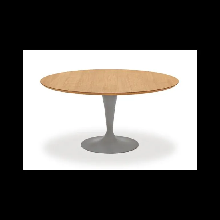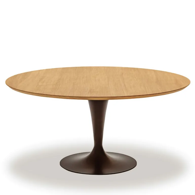 Son joli plateau rond en bois et l’élégante silhouette de son piétement central en métal sont les atouts charme de la table design Flûte. Personnalisable, son piétement en tulipe peut être au choix, chromé ou laqué et dispose d’un diamètre de 55 cm pour le plateau de 120 cm et 65 cm pour le plateau 150 cm. Son plateau en placage bois comporte une coupe de bord exposée à 45° qui booste sa silhouette design. Si vous êtes à la recherche d’une table mixant authenticité et design, la table en bois Flûte vous comblera.