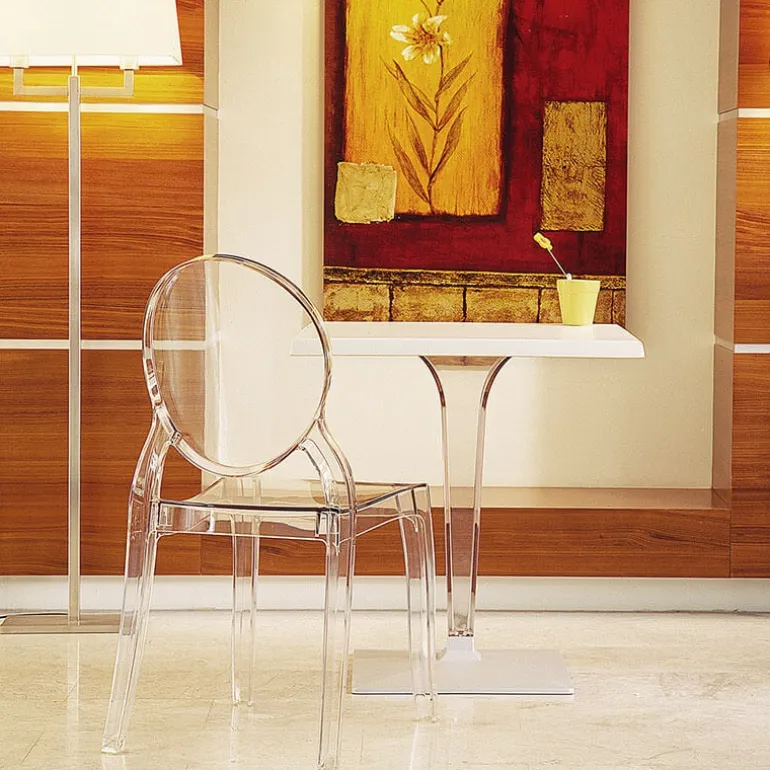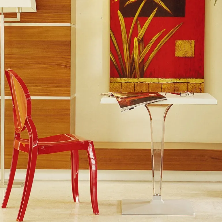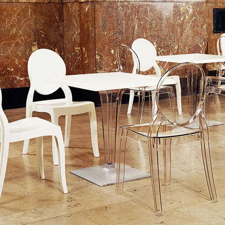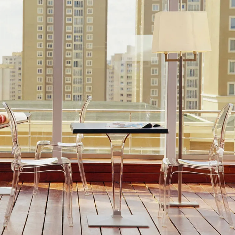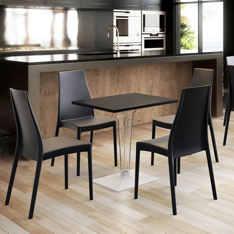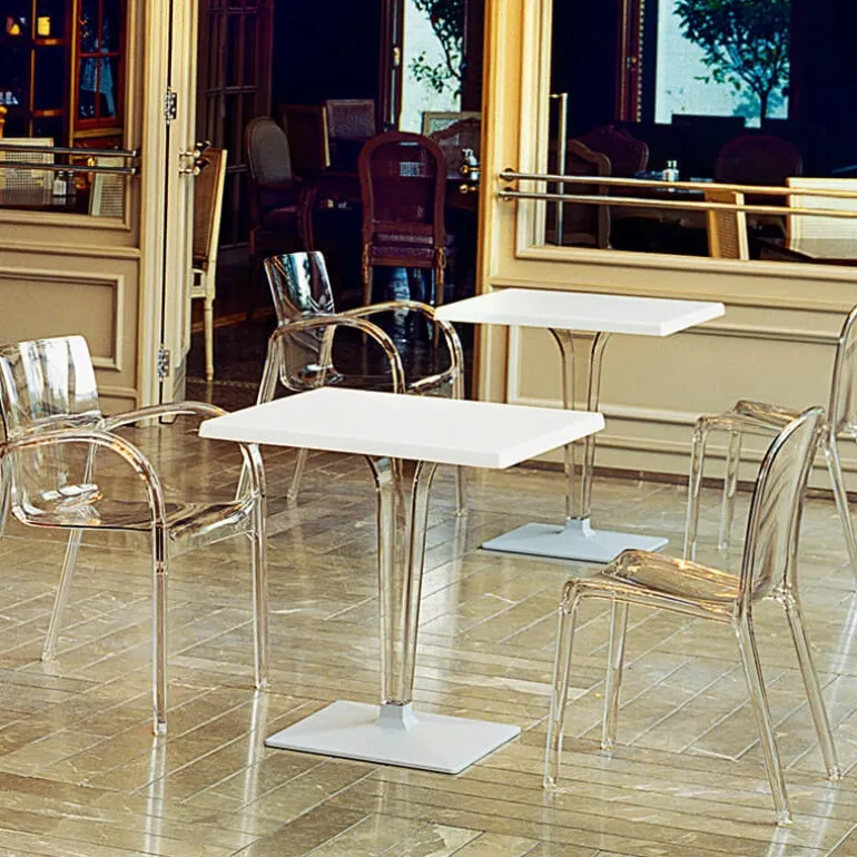 La table carrée design Ice est disponible en deux dimensions et saura s’adapter à toutes les situations. Elle comporte une colonne transparente en polycarbonate posée sur un socle en aluminium gris et un plateau disponible en plusieurs coloris au choix. Le plateau de cette table est composé en stratifié moulé werzalit. Les différents matériaux qui composent la table carrée design Ice s’harmonisent parfaitement pour créer un modèle design aux lignes élégantes.