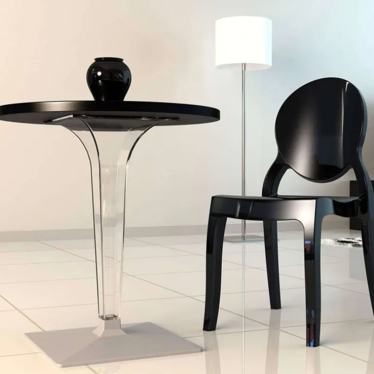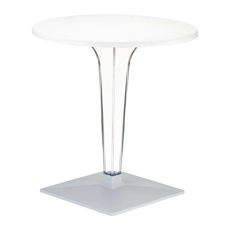 La table design ronde Ice arbore une ligne originale grâce à sa colonne en polycarbonate ronde. Le plateau rond est composé en stratifié moulé werzalit, et le socle carré est en aluminium gris clair pour le plateau blanc et en aluminium noir pour le plateau noir. Ces différents matériaux s’associent parfaitement pour donner un aspect élégant à la table design Ice. Les trois coloris disponibles vous permettront de pouvoir choisir celle qui s’harmonisera au mieux avec votre décoration intérieure.