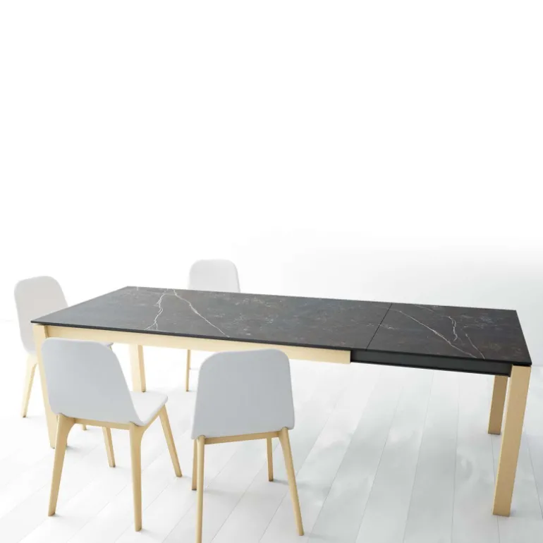 Le Dekton est une matière qui a déjà fait ses preuves en étant utilisé durant des années sur les plans de travail. Composé d’un mélange de verre, de porcelaine et de quartz assemblés grâce un procédé exclusif Dekton, il s’agit d’un matériau massif et résistant. Sa capacité à avoir une bonne résistance aux rayures, à la chaleur, à l’abrasion ou bien encore aux taches ont fait son succès. Désormais utilisé sur les tables, cette matière saura se montrer indispensable. Pour encore plus de praticité, cette table est extensible puisqu’elle cache sous son plateau une allonge qui vous permettra d’accueillir plus de personnes à tout moment. On aime l’authenticité de sa structure en hêtre massif provenant de forêts européennes gérées durablement.