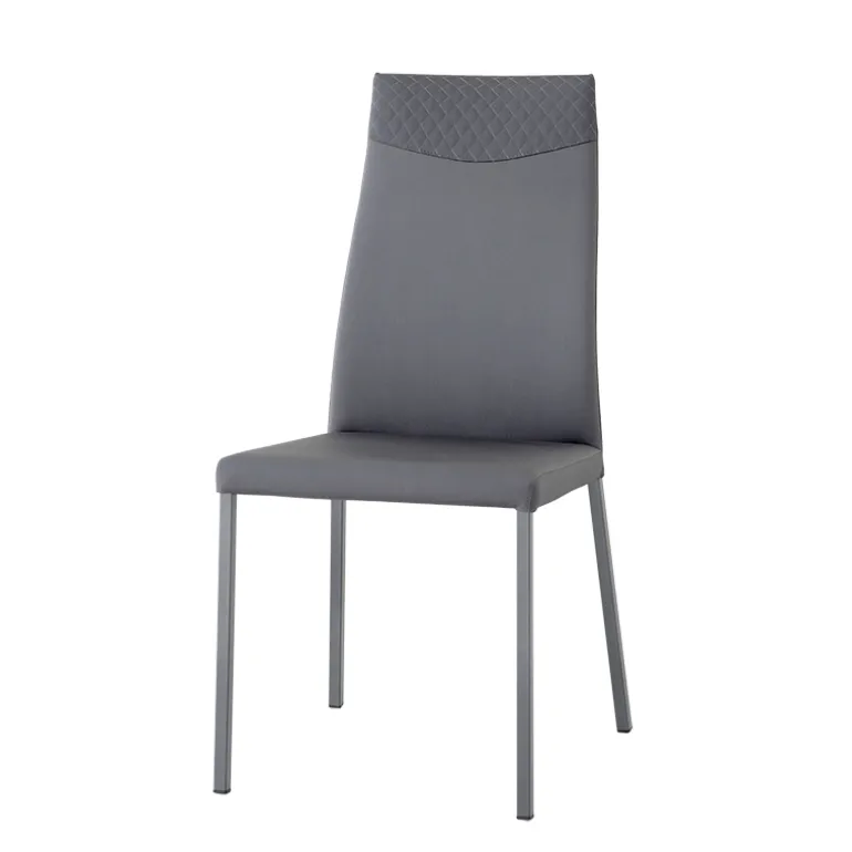 La chaise de salle à manger Lena M est une création italienne au design élégant et indémodable qui sublimera votre salle à manger et lui apportera beaucoup d’allure. Elle est composée d’un revêtement en synthétique légèrement matelassé sur le haut intérieur du dossier et entièrement matelassé dans le dos du dossier. Elle possède une silhouette élancée et un style très contemporain. Joliment décorée d’un délicat matelassage sur le haut de son dossier, la chaise italienne Lena M est pleine de charme ! Le synthétique est un matériau facile d’entretien qui convient aussi bien à la salle à manger qu’à la cuisine. De plus, avec son assise et son dossier rembourrés, la chaise Lena sera très confortable pendant toute la durée de vos repas. Sachez aussi que ce modèle est personnalisable, vous serez en effet en mesure de choisir la couleur du revêtement de votre chaise. Il vous appartient également de choisir des pieds en métal apparents ou bien des pieds en métal gainés en synthétique. À vous de jouer pour adapter votre chaise à votre décoration intérieure ! A noter que les coutures sont contrastées afin de sublimer le matelassage du produit : M02 = matelassé TAUPE coutures coloris marron M01 = matelassé MARRON coutures coloris marron clair M11 = matelassé METEORE coutures coloris grège M18 = matelassé CARBONE coutures coloris gris M14 = matelassé ORANGE coutures coloris marron