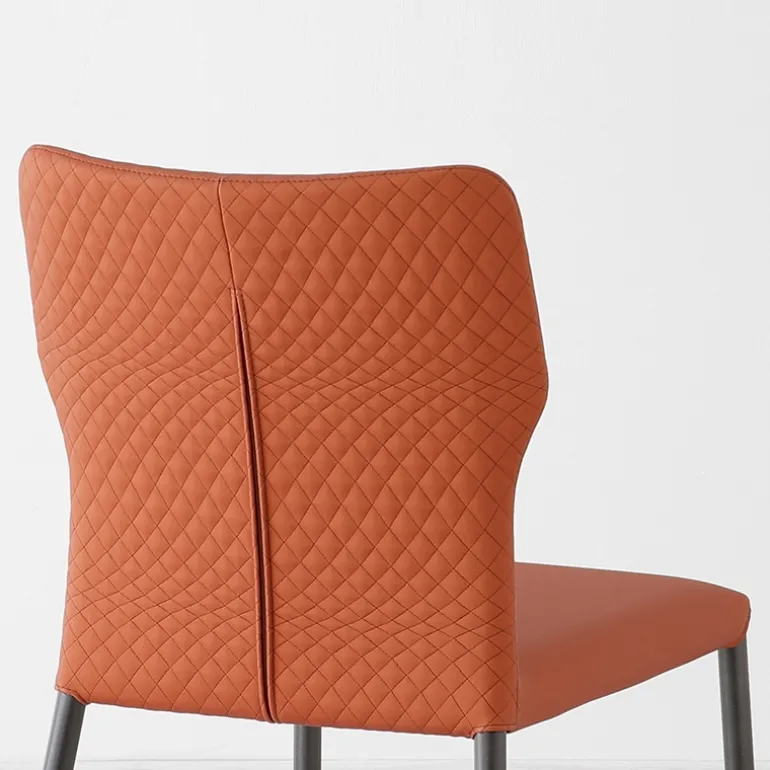La chaise matelassée Maryl M présente un style classique modernisé par le matelassage et la forme originale de son dossier. Elle intégrera donc aussi bien une décoration contemporaine qu’une décoration moderne. Son dossier comme son assise sont rembourrés et revêtus en synthétique pour un confort optimal. On apprécie le détail de son dossier matelassé tout en finesse qui lui apporte un charme particulier. A noter que le dos de son dossier est également matelassé. Son dossier large ainsi que ses pieds fuselés en acier époxy ou gainés lui apportent une touche d’originalité et modernisent sa silhouette. Cette chaise italienne est personnalisable. En effet, vous pouvez choisir le coloris de la structure et du revêtement parmi un large choix de possibilités pour adapter votre chaise à votre décoration intérieure. Vous pourrez également opter pour des pieds en acier en plusieurs coloris ou des pieds gainés. A noter que les coutures sont contrastées afin de mettre en avant l’esthétique du matelassage : M02 = matelassé TAUPE coutures coloris marron M01 = matelassé MARRON coutures coloris marron clair M11 = matelassé METEORE coutures coloris grège M18 = matelassé CARBONE coutures coloris gris M14 = matelassé ORANGE coutures coloris marron