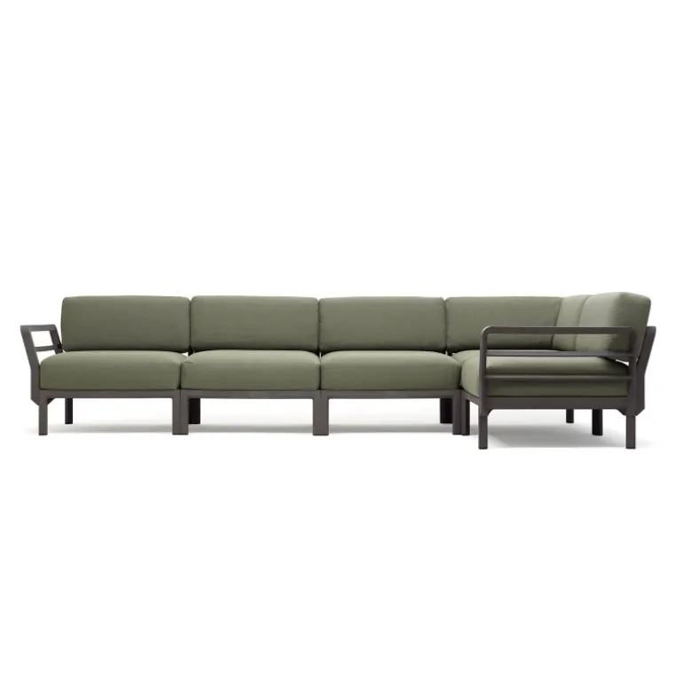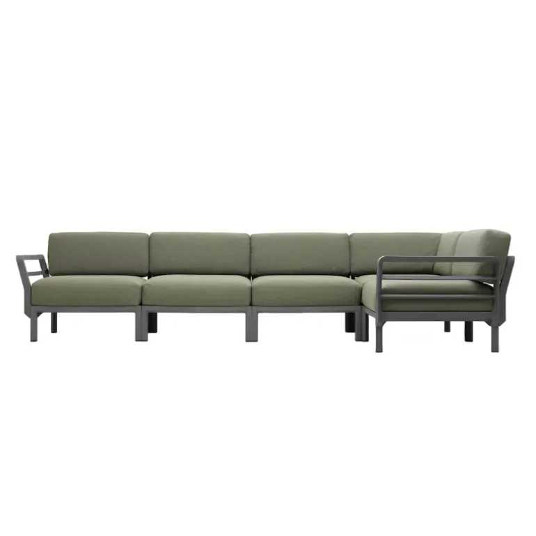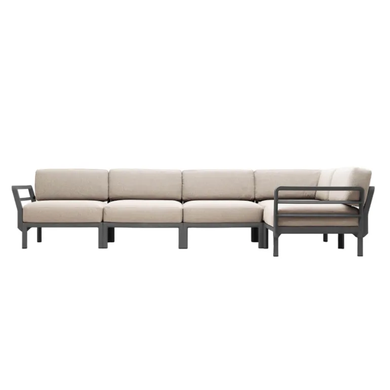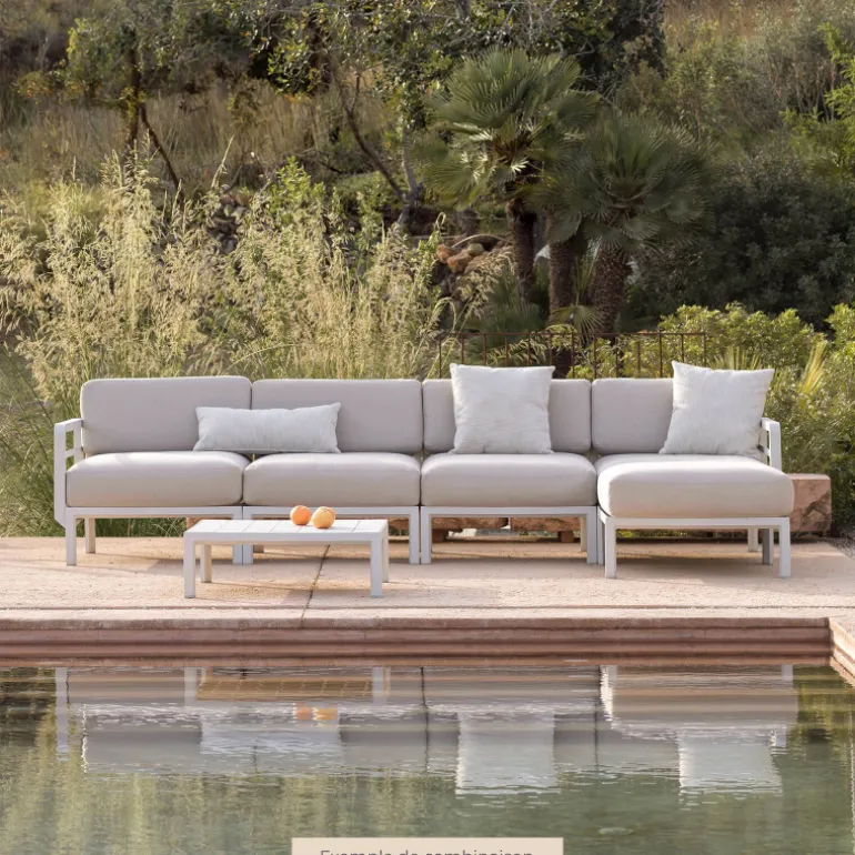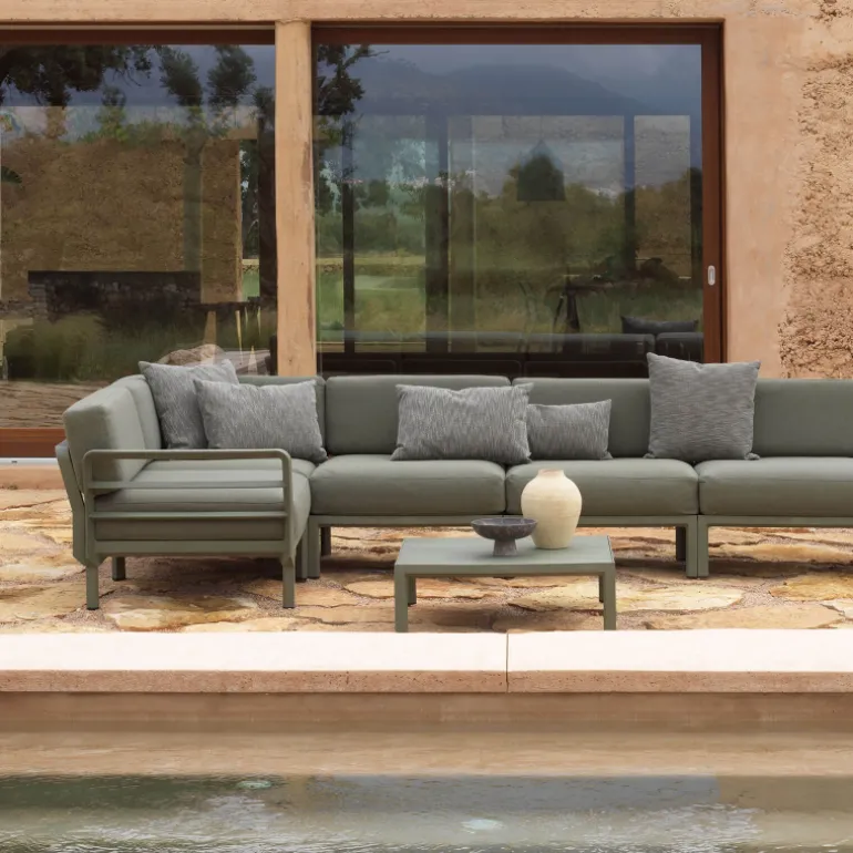 Composé de 5 assises, ce canapé d’extérieur s’adapte à toutes les envies grâce à sa structure en résine régénérée, mêlant polypropylène renforcé de fibre de verre et un revêtement en tissu composé en partie d’une fibre recyclée. Conçu pour une flexibilité maximale, il permet de créer d’innombrables configurations grâce à ses différents modules. Ses dossiers et accoudoirs s’enclenchent sans vis, offrant une installation intuitive et un rendu harmonieux. Sa structure en polypropylène teintée dans la masse et traitée anti-UV garantit une excellente résistance aux conditions extérieures, tout en conservant son esthétique au fil du temps. Côté confort, ses coussins déhoussables avec fermeture zippée facilitent l’entretien au quotidien. Ces derniers sont imperméables afin d’offrir une bonne résistance à l’eau et aux taches. Ils ont également une bonne résistance aux UV. Disponible en plusieurs coloris, le canapé de jardin Maximo 5 séduit par son aspect texturé et ses nuances naturelles, conférant à chaque modèle une allure unique et authentique. Enfin, sa certification CATAS atteste de sa qualité, sa robustesse et sa durabilité, faisant de Maximo 5 un choix sûr et durable pour tous les extérieurs.