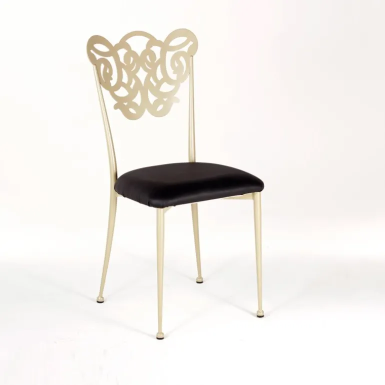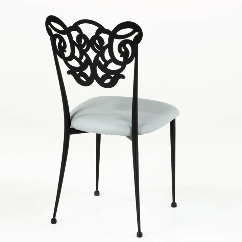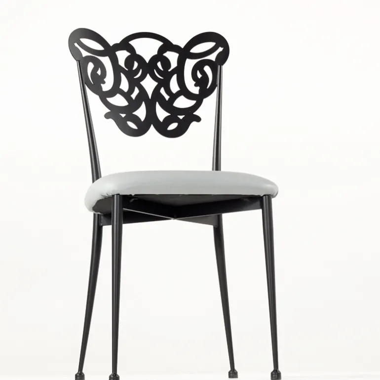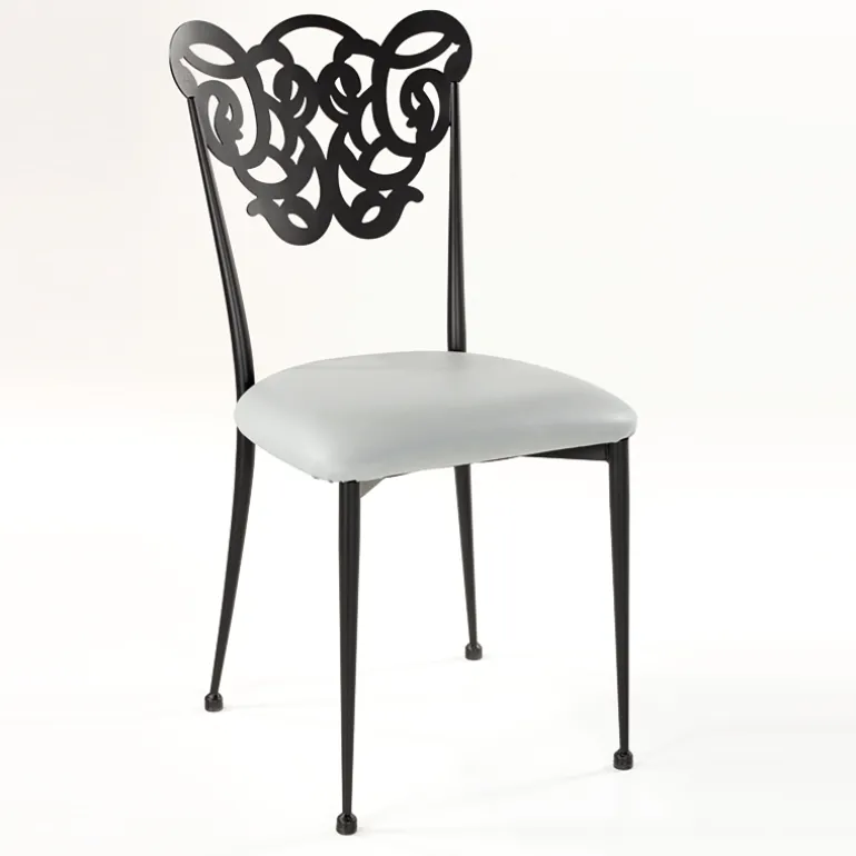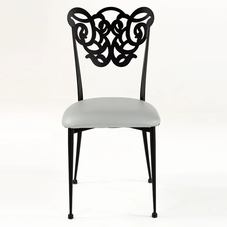 Cette chaise contemporaine séduit par son esthétique originale et romantique. Son dossier tout en arabesque vous évoquera sûrement les belles terrasses méditerranéennes. Pour compléter sa structure en métal, une assise en synthétique garnie vient lui apporter un brin de douceur. Cette jolie chaise trouvera sa place dans une salle à manger ou bien dans un salon. Pour un intérieur harmonieux, nous vous proposons de la personnaliser. Choisissez les coloris et finitions que vous souhaitez en fonction des teintes déjà présentes dans votre pièce de vie.