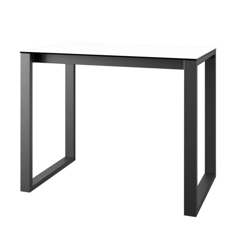 Découvrez notre élégante table rectangulaire de hauteur snack, alliant design et praticité. Son plateau en céramique de haute qualité garantit une durabilité supérieure notamment à travers une bonne résistance aux rayures, à la chaleur et aux UV ainsi qu’un entretien facile. Les pieds en métal, au design raffiné en forme de traîneau, confèrent une touche contemporaine et solide à l’ensemble. Personnalisable à souhait, cette table se décline en divers coloris pour le plateau et les pieds, s’adaptant harmonieusement à votre décoration. Disponible en plusieurs dimensions, elle est idéale pour tous les espaces et usages, apportant une solution esthétique et fonctionnelle à votre intérieur. La table Neox s’associera avec des tabourets d’environ 65 cm de hauteur d’assise.