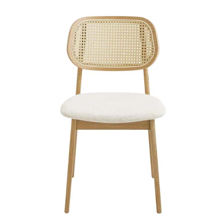La chaise Nina est l’incarnation parfaite du style bohème, un véritable appel à l’évasion et à la sérénité. Son assise en tissu doux, associée à son dossier en cannage plastique imitant le rotin, permet de créer une atmosphère chaleureuse et intemporelle. La structure en chêne massif renforce sa beauté naturelle et son authenticité. Idéale pour des intérieurs où l’on cherche à créer un cocon apaisant, la chaise Nina s’intègre harmonieusement dans des espaces aux influences bohèmes et authentiques. Avec ses tons neutres et son design épuré, elle apporte une touche de fraîcheur et de légèreté qui invite à l’évasion et au bien-être, tout en apportant confort et style à vos espaces de vie. Certifiée par la norme NF EN12520, la chaise Nina est un gage de qualité.