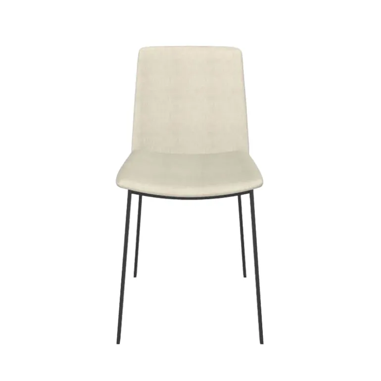 Vus de face, les pieds de la chaise rembourrée Primera sont extra fins et apportent de la délicatesse à sa ligne. Sous cet angle, la chaise donne l’impression d’une grande légèreté qui sublimera la pièce. Pourtant, ses pieds sont réalisés en métal lui assurant une excellente stabilité et une bonne résistance. Quant à sa coque, elle est rembourrée de mousse et revêtue en tissu pour vous offrir un confort optimal. Superbe dans une déco contemporaine, vous pouvez aussi l’installer dans une salle à manger moderne !