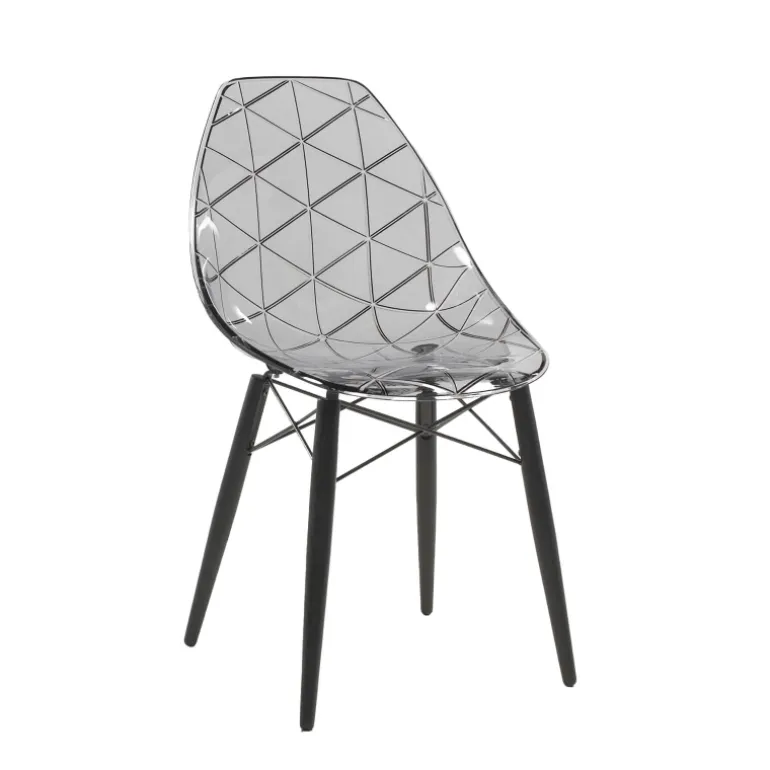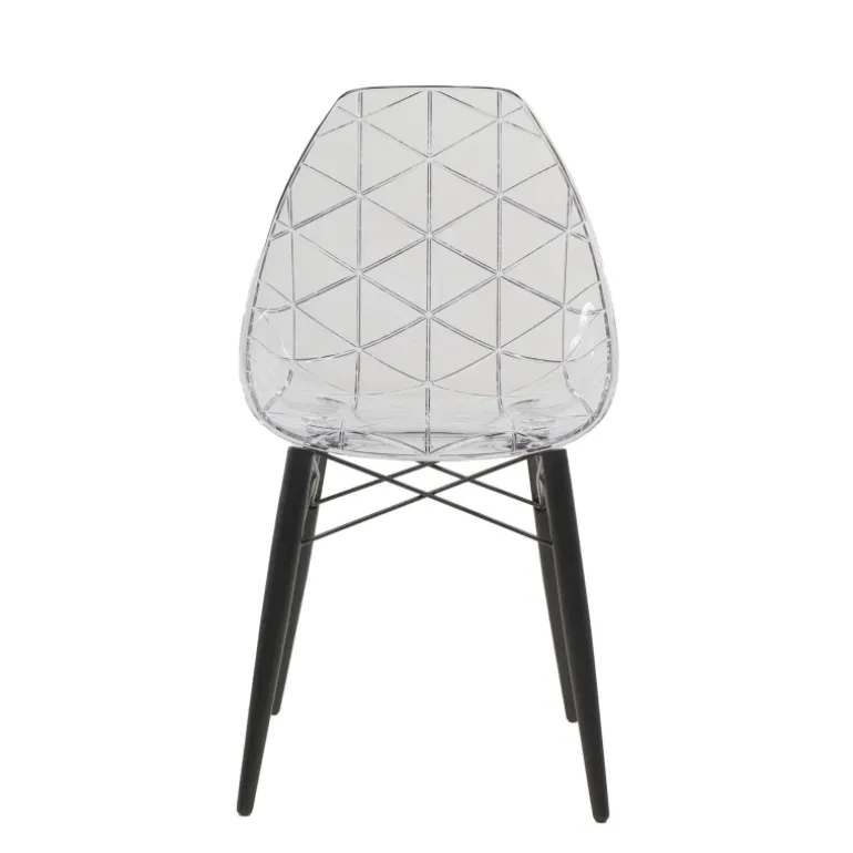 Ce produit résolument design brillera par sa modernité et son confort dans toutes les pièces de votre intérieur. En effet, la chaise design Prisma est composée d’une coque en acrylique transparente avec un motif triangulaire gravé en relief et dupliqué sur l’ensemble de son dos. Ces motifs soulignent l’originalité et le caractère du produit, pour le plus grand plaisir des adeptes de mobilier tendance. La coque repose sur des pieds en frêne reliés par une entretoise métallique noire. Son esthétique soignée, le choix des matériaux utilisés et l’équilibre parfait entre acrylique transparent et bois massif sont les clés du succès de la Prisma, tout comme son excellent confort d’assise.