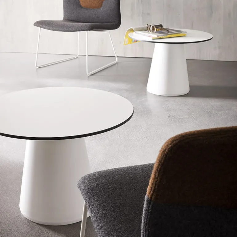On aime le design unique de la table d’appoint Roller. Elle est dotée d’un pied central en forme de sablier ainsi que d’un plateau en compact rond. Ce matériau est un stratifié innovant et résistant. Sa certification CATAS le prouve ! Enfin, il existe une grande diversité de possibilités de personnalisation. Les dimensions ainsi que les coloris du plateau et du pied sont au choix parmi plusieurs possibilités.